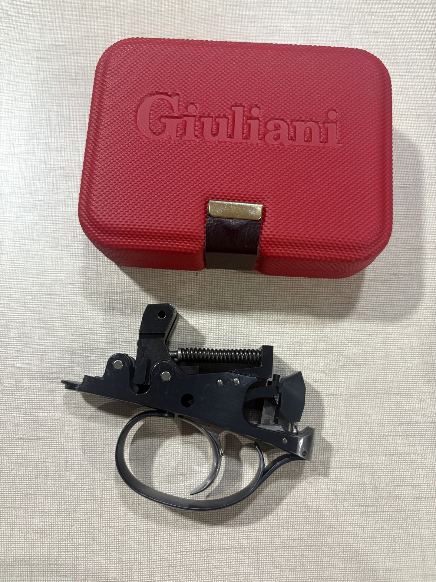 Disparador metálico preto com mola e caixa vermelha Giuliani
