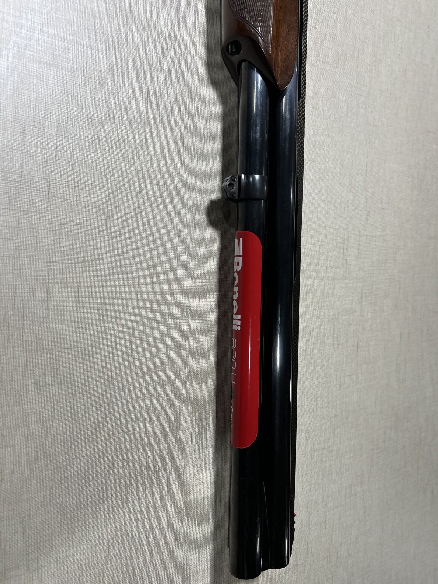 Espingarda Benelli cano duplo com coronha de madeira castanha