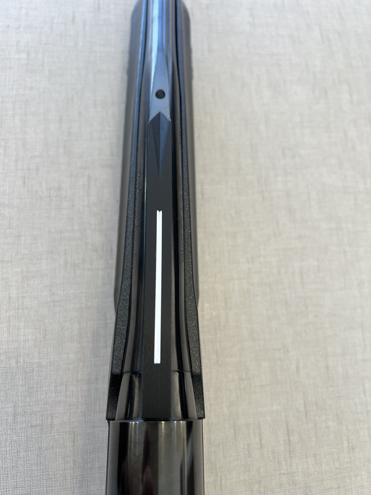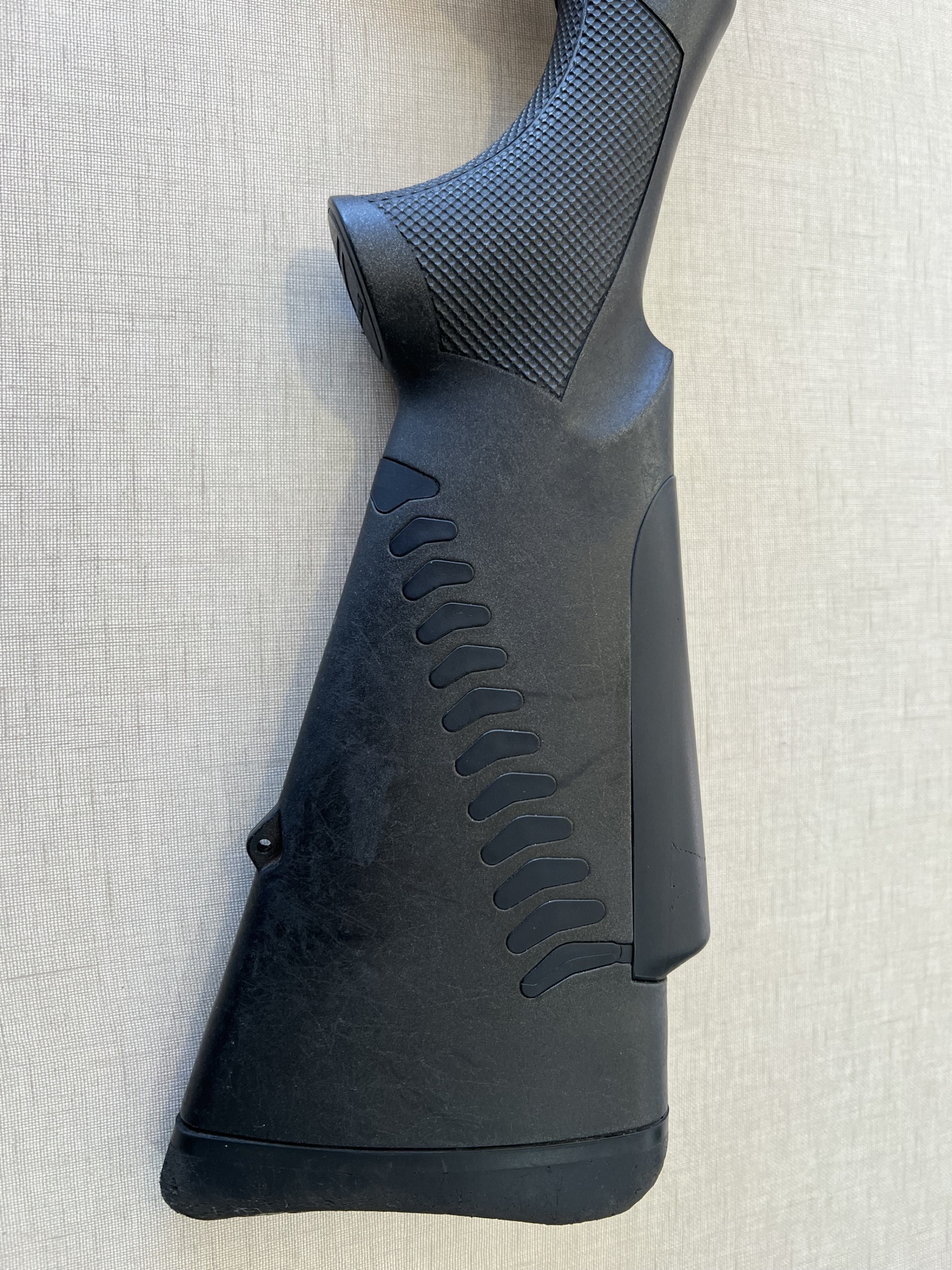 Espingarda preta com acabamento brilhante e detalhes texturizados