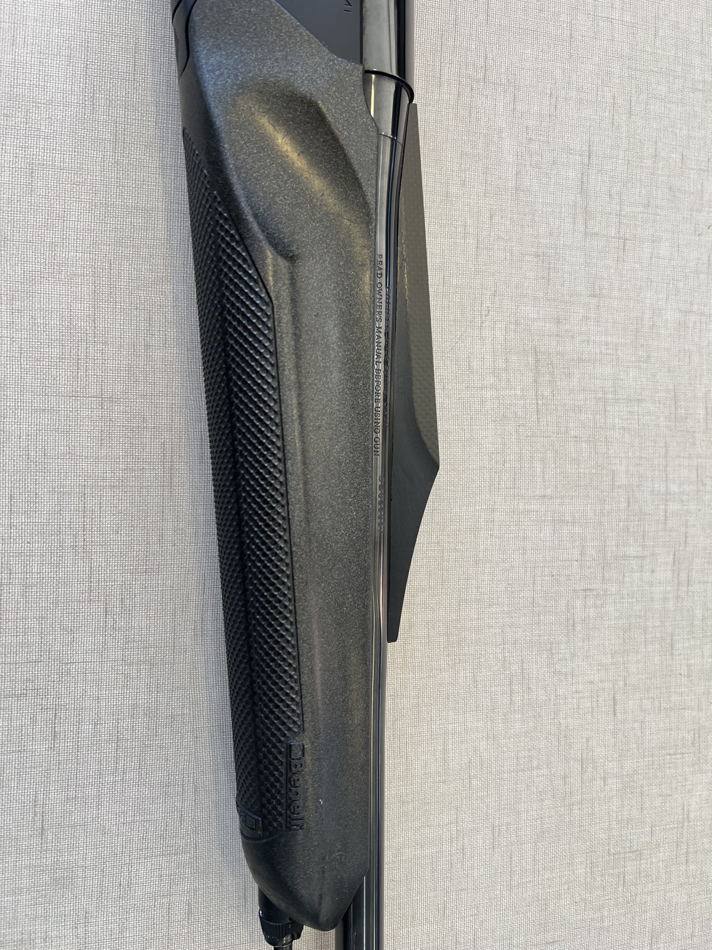 Coronha preta texturizada de espingarda com a palavra BAIKAL em relevo