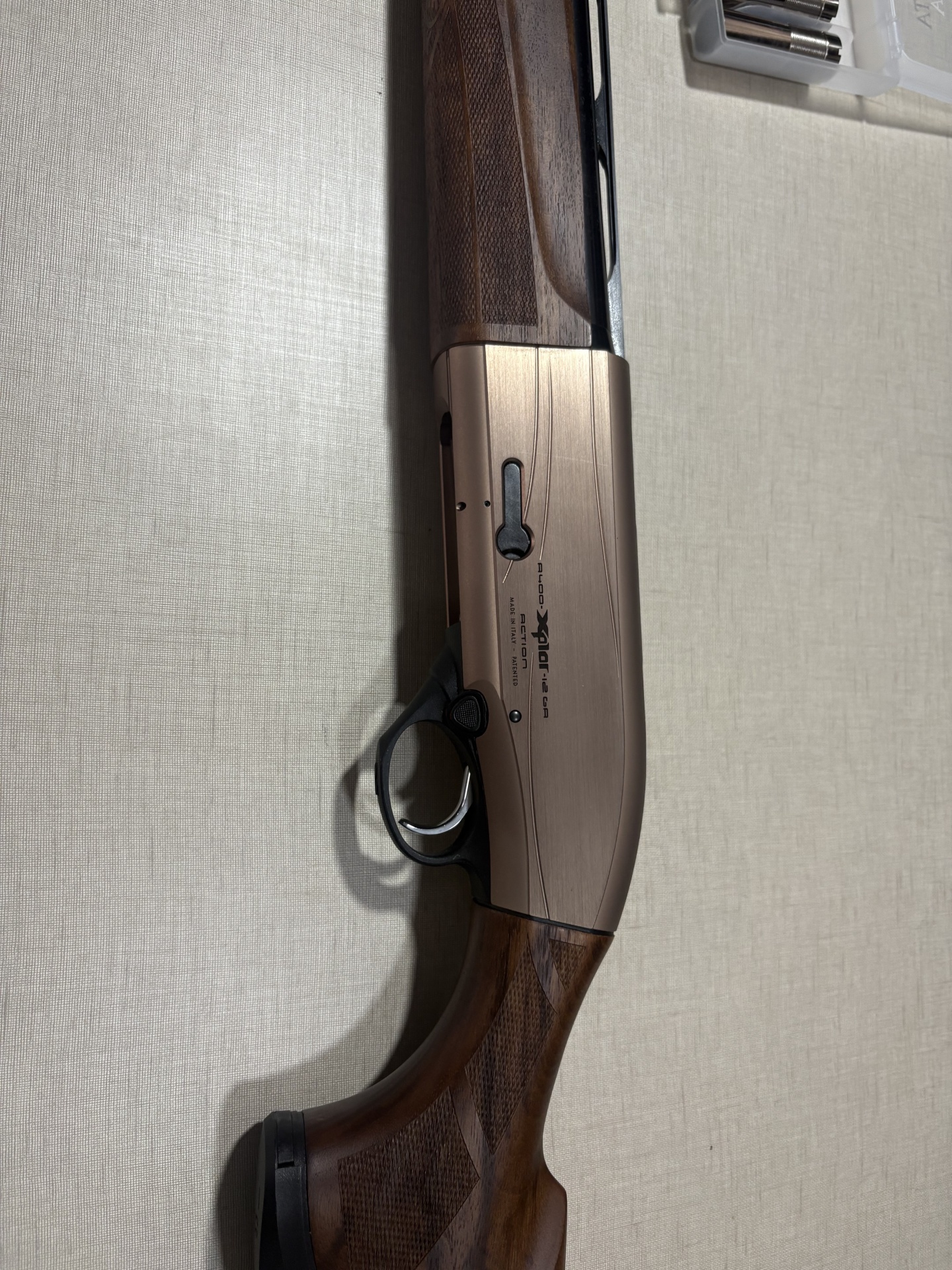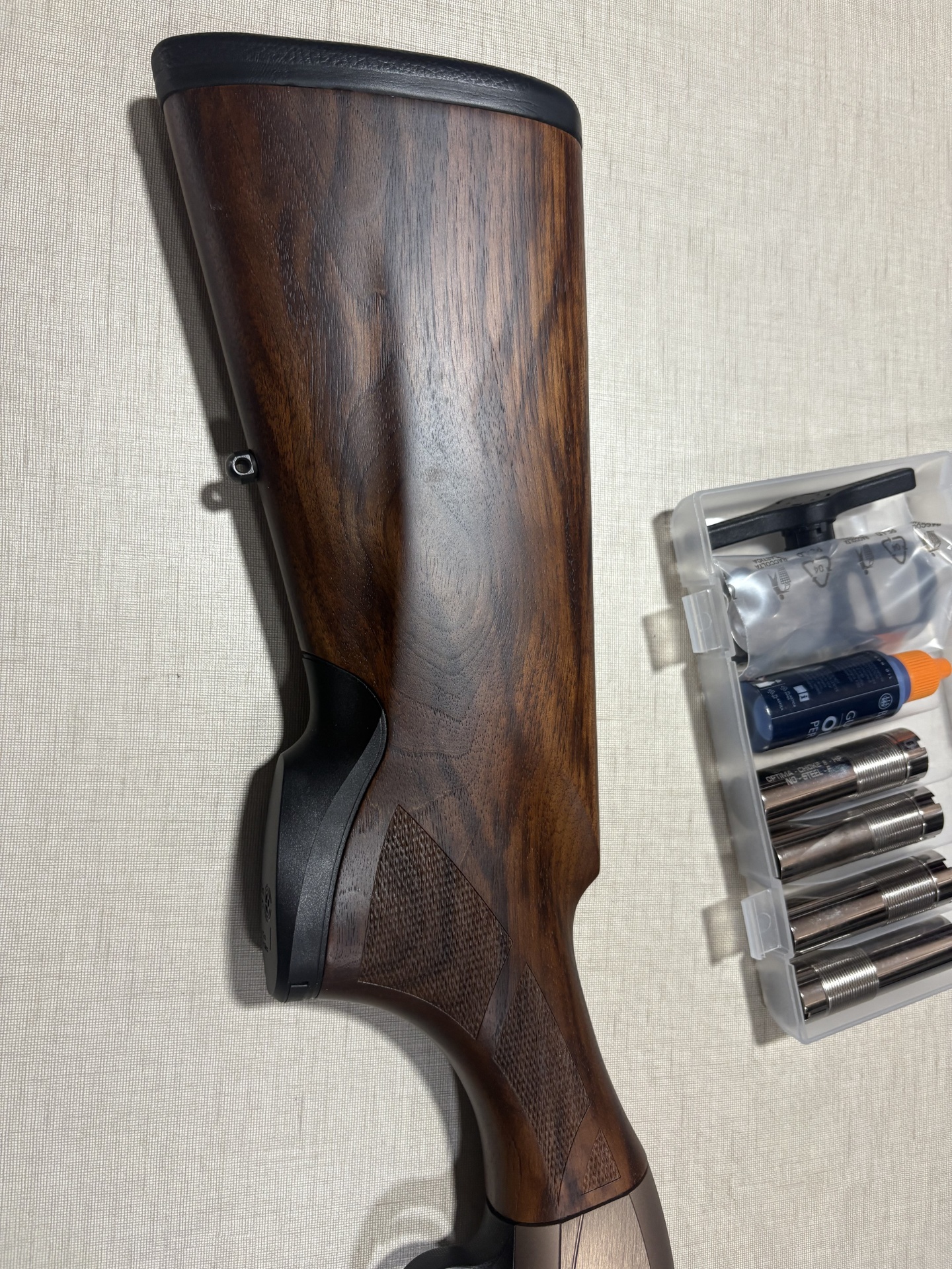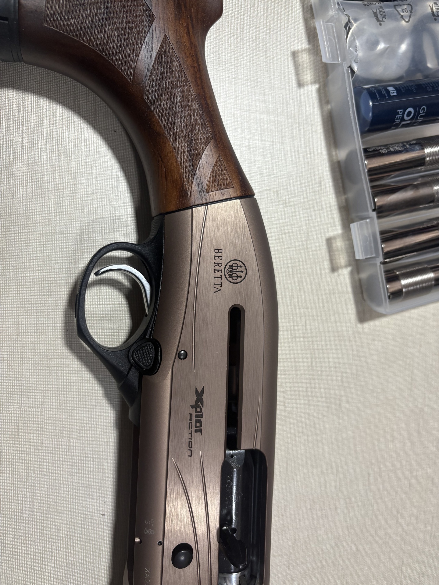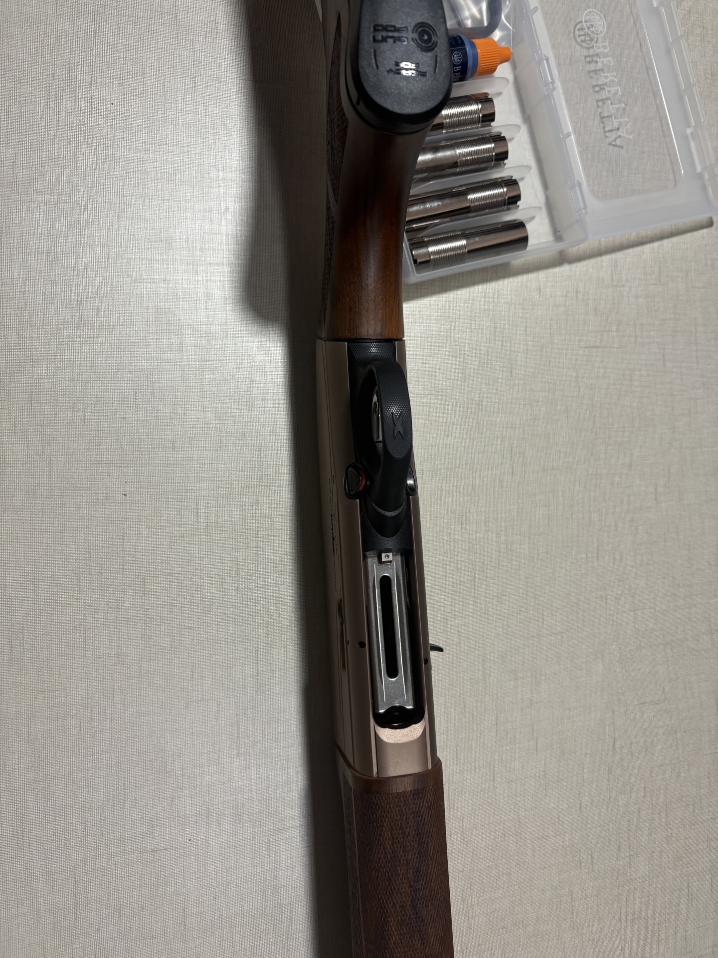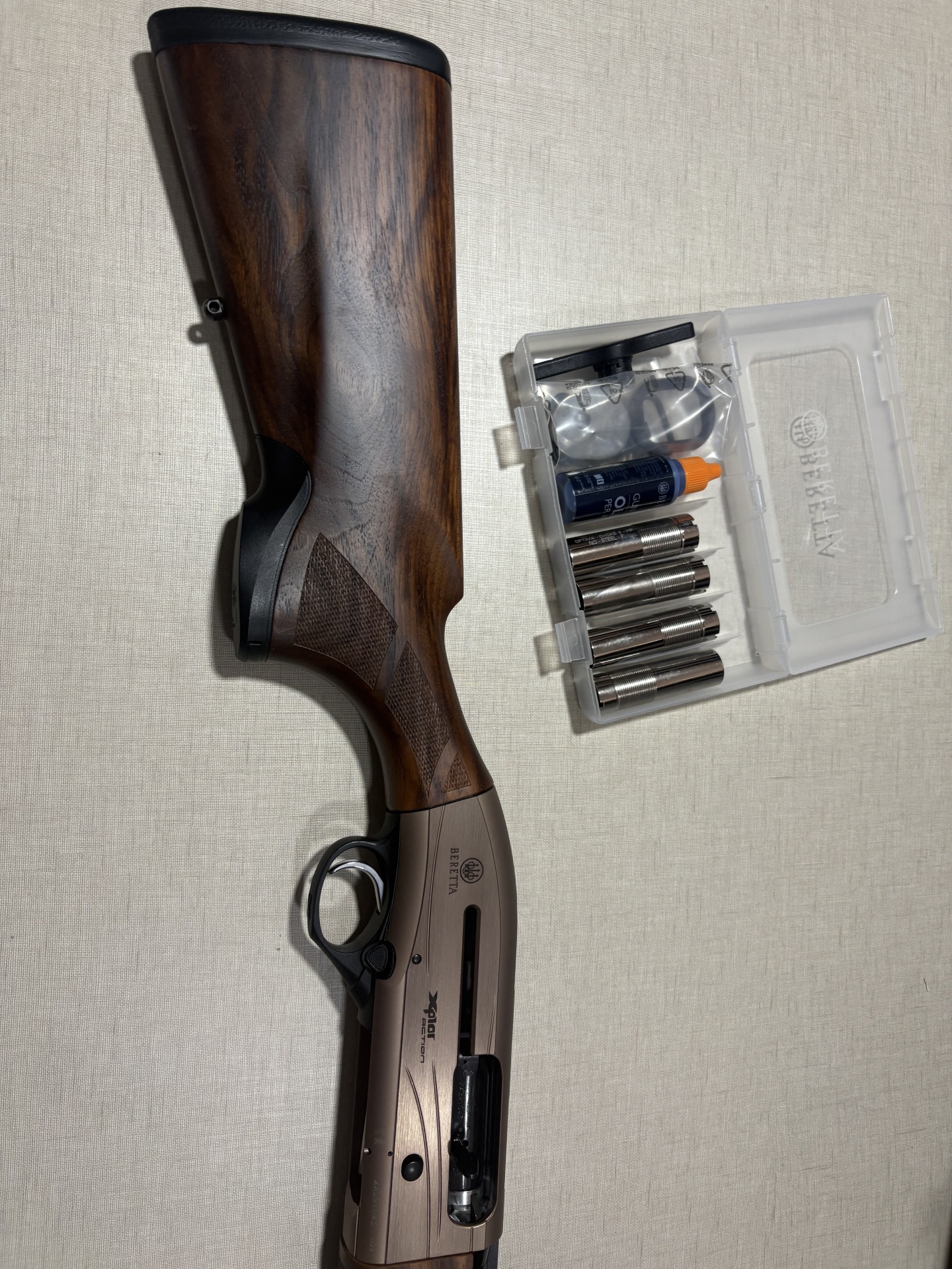 Espingarda Beretta Xplor Action com chokes e acessórios numa caixa de plástico