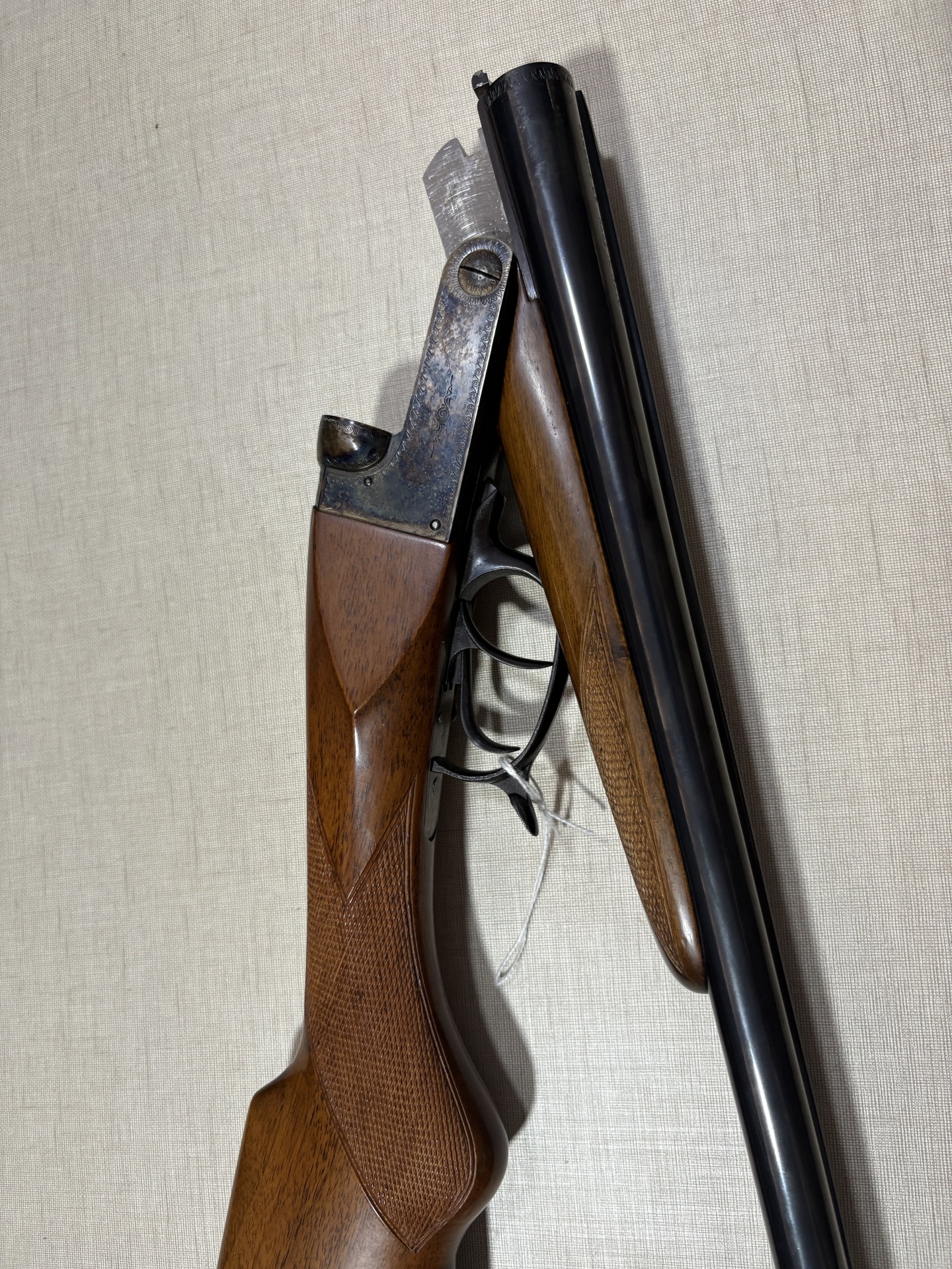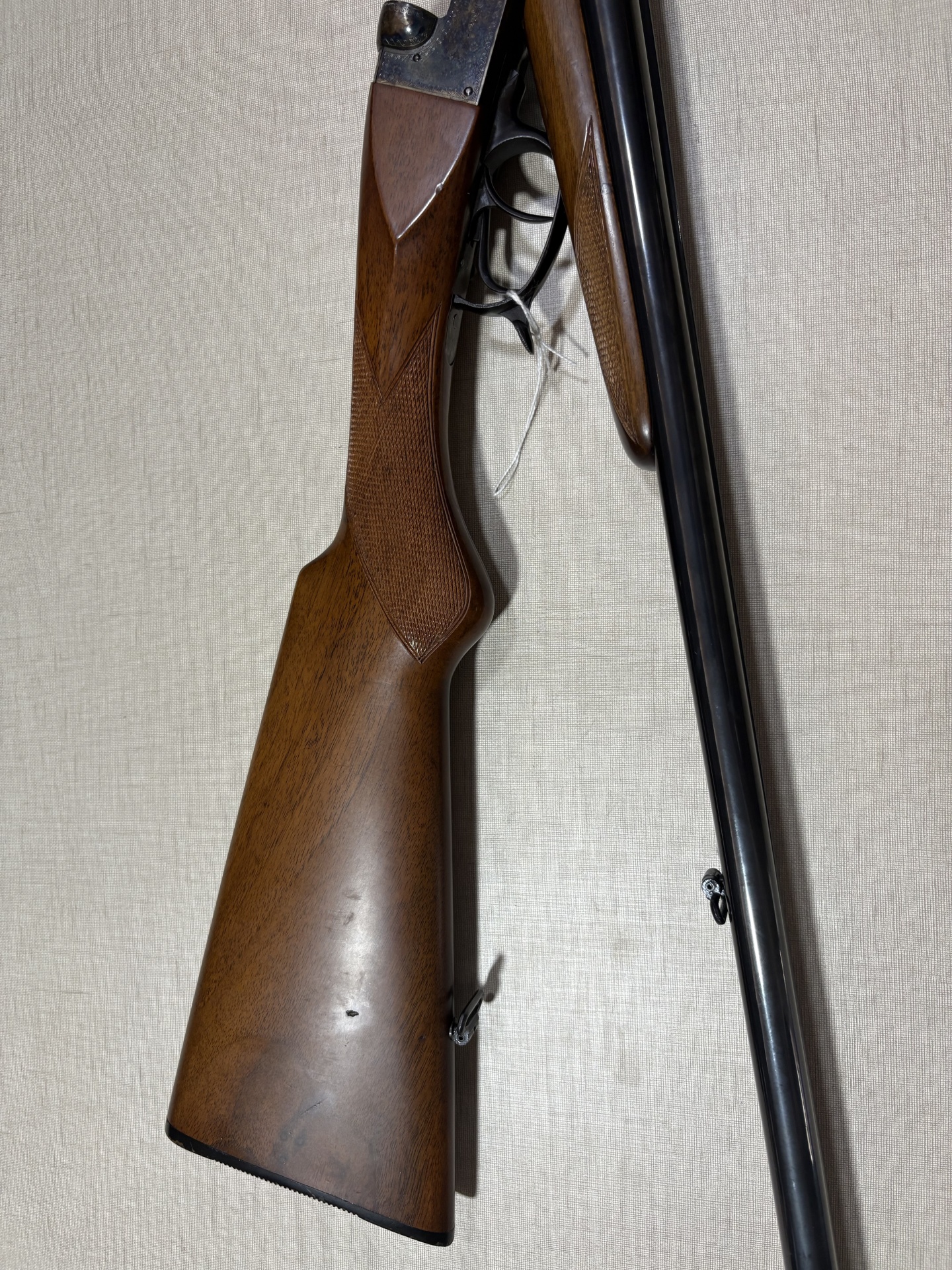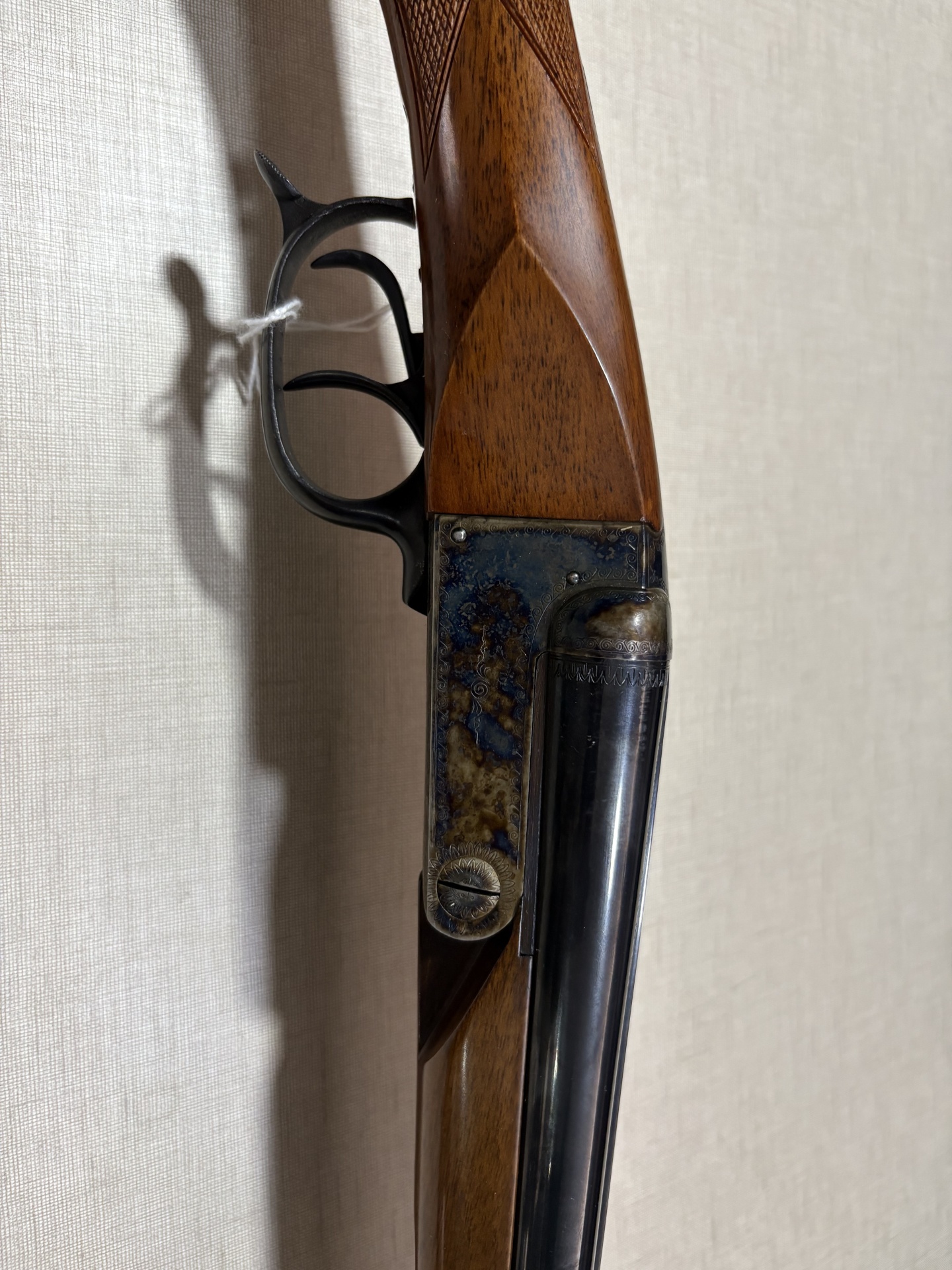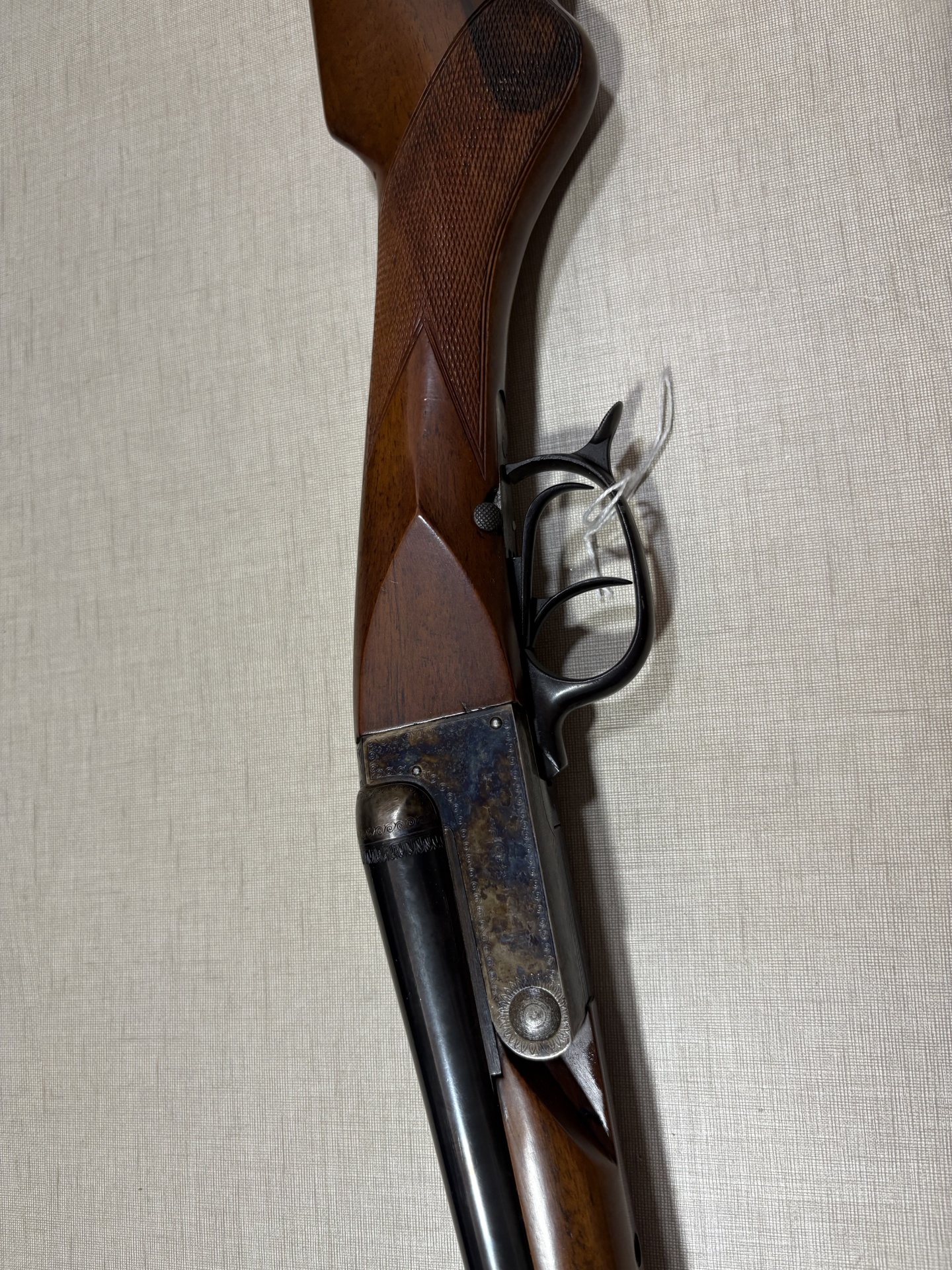 Espingarda de caça com canos duplos e empunhadura em madeira