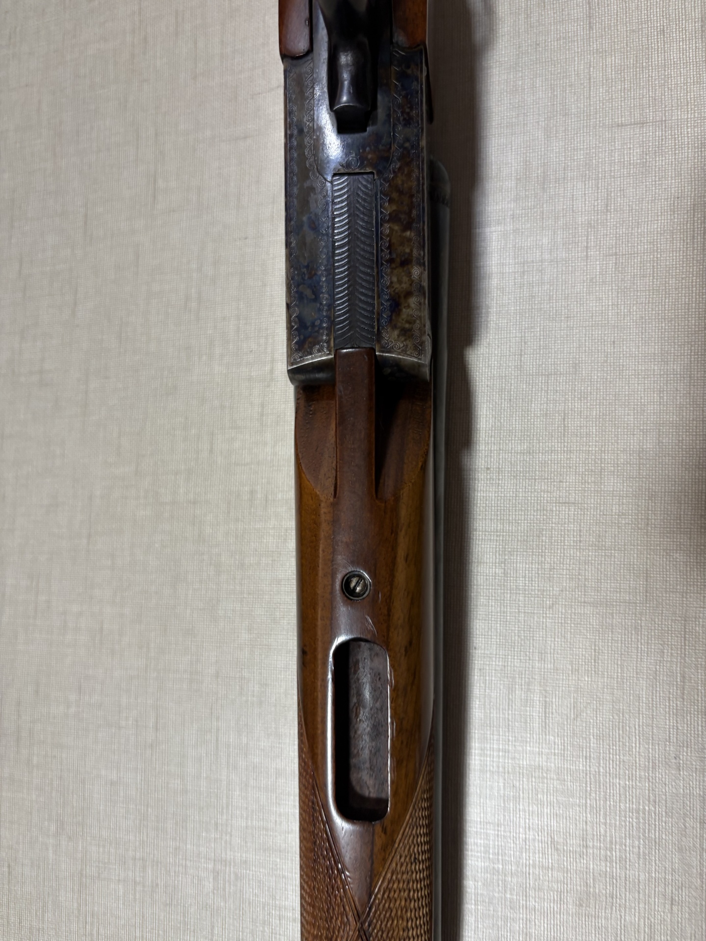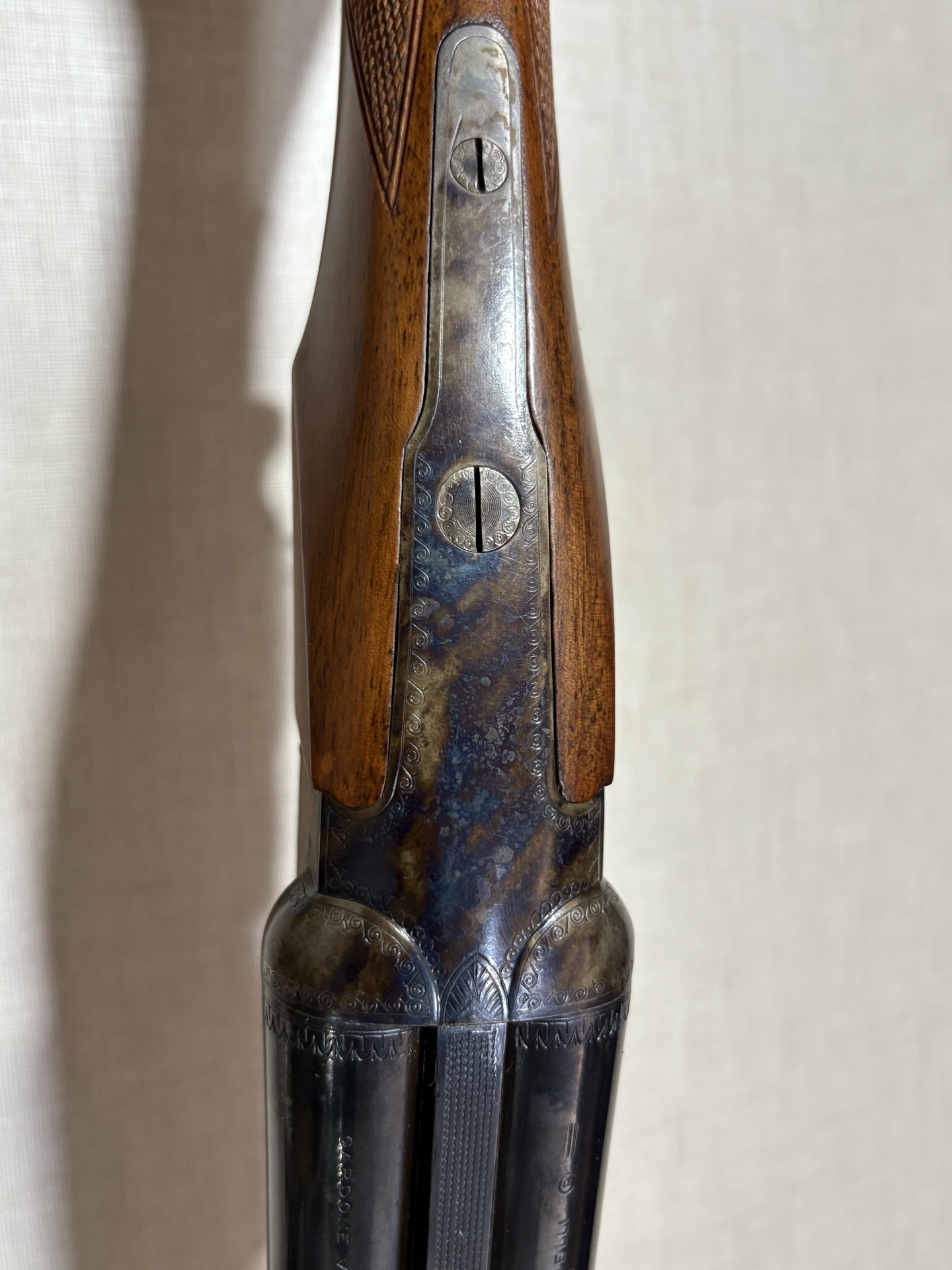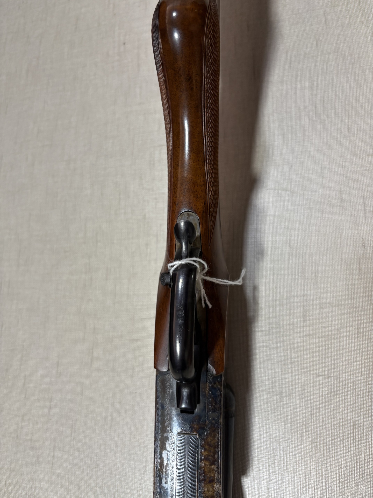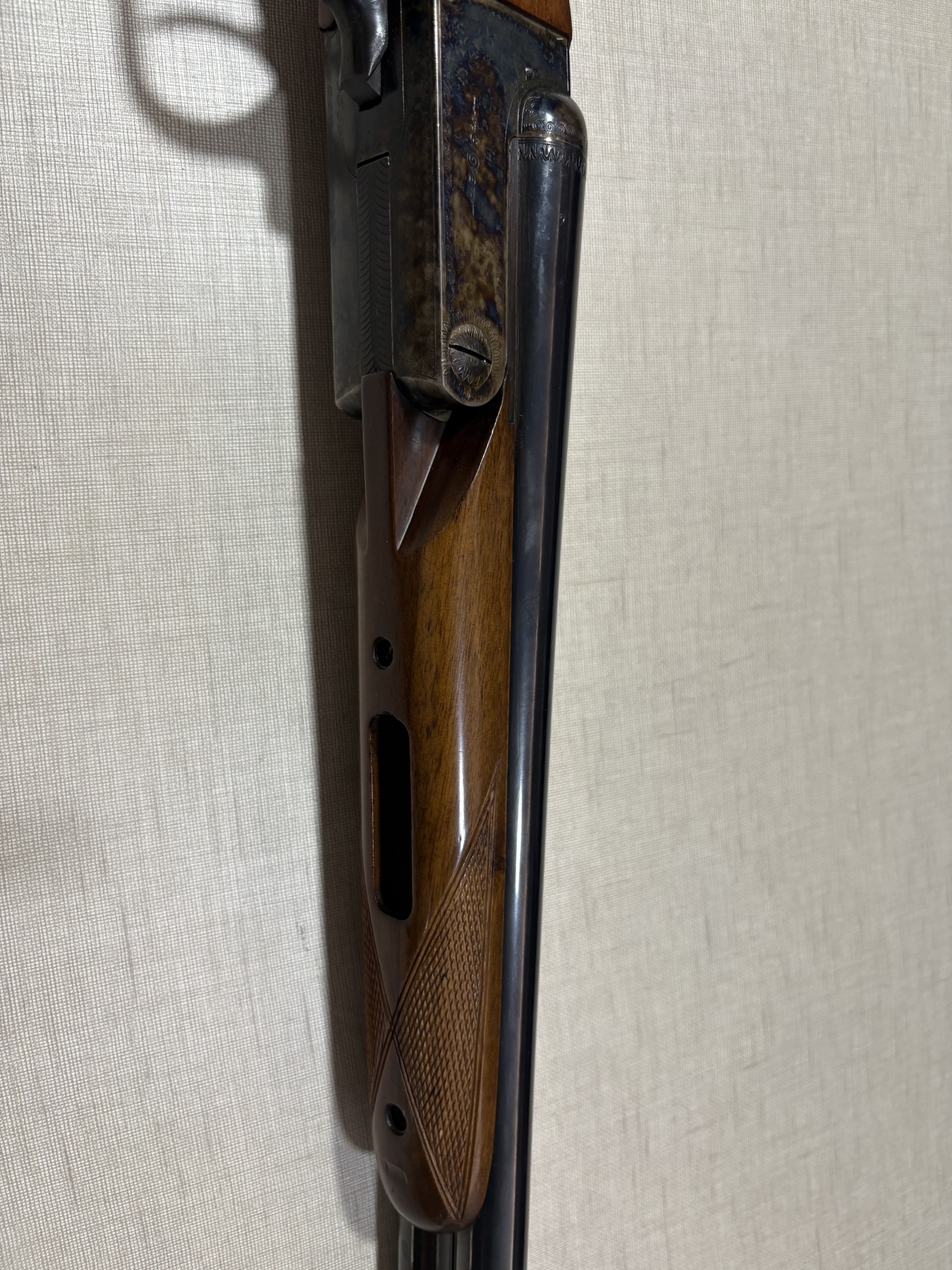 Espingarda de caça com canos duplos e empunhadura em madeira