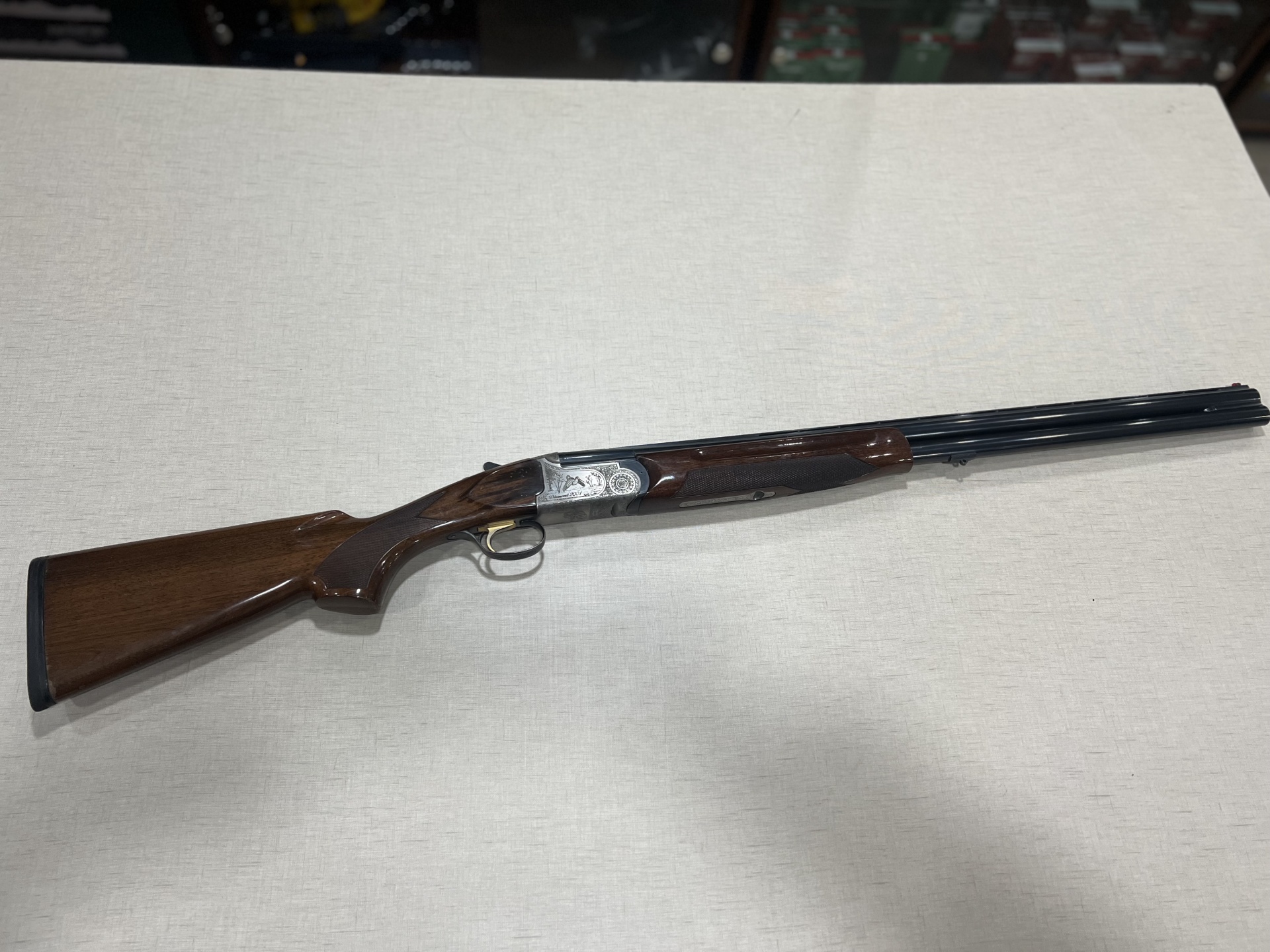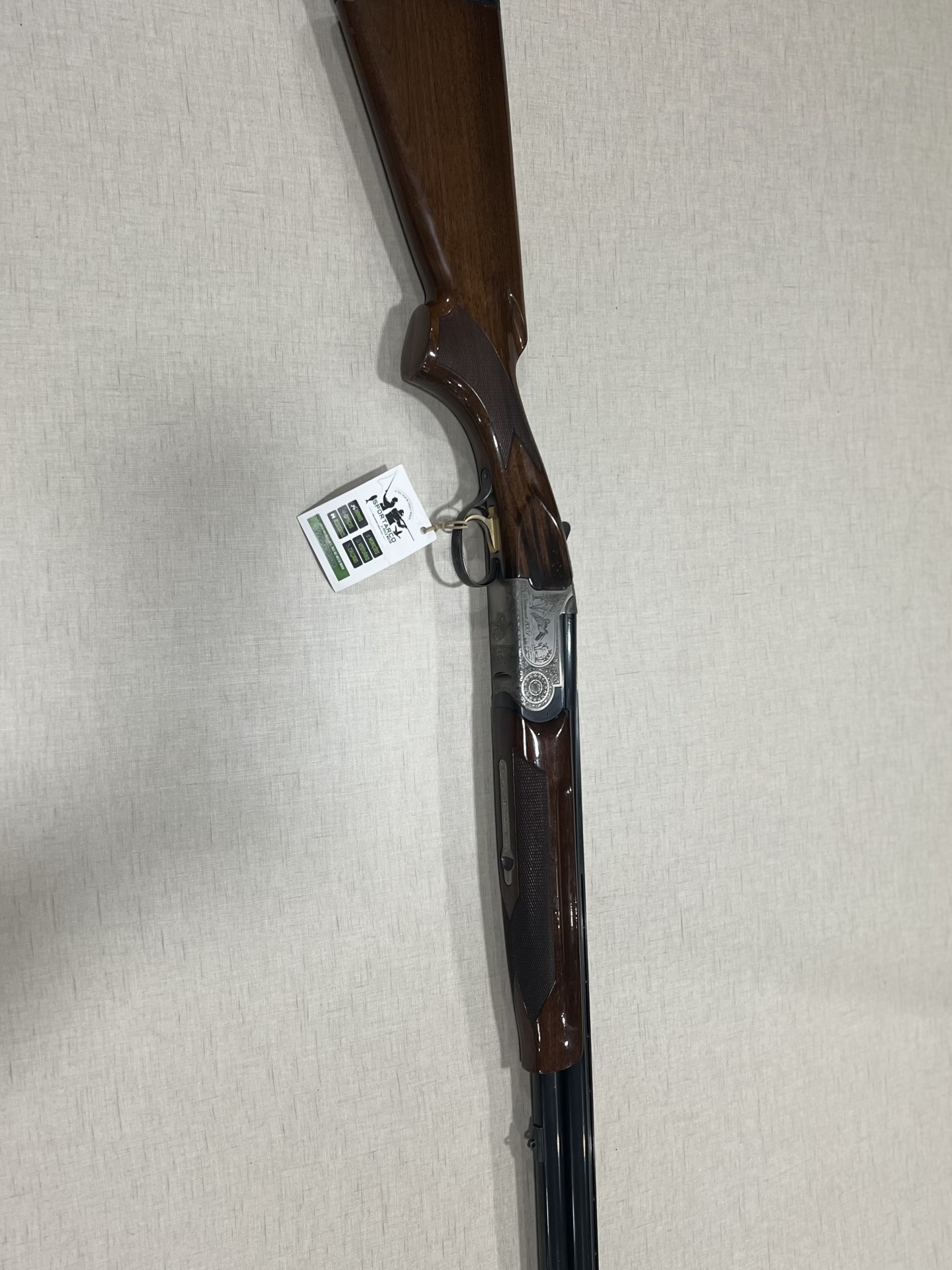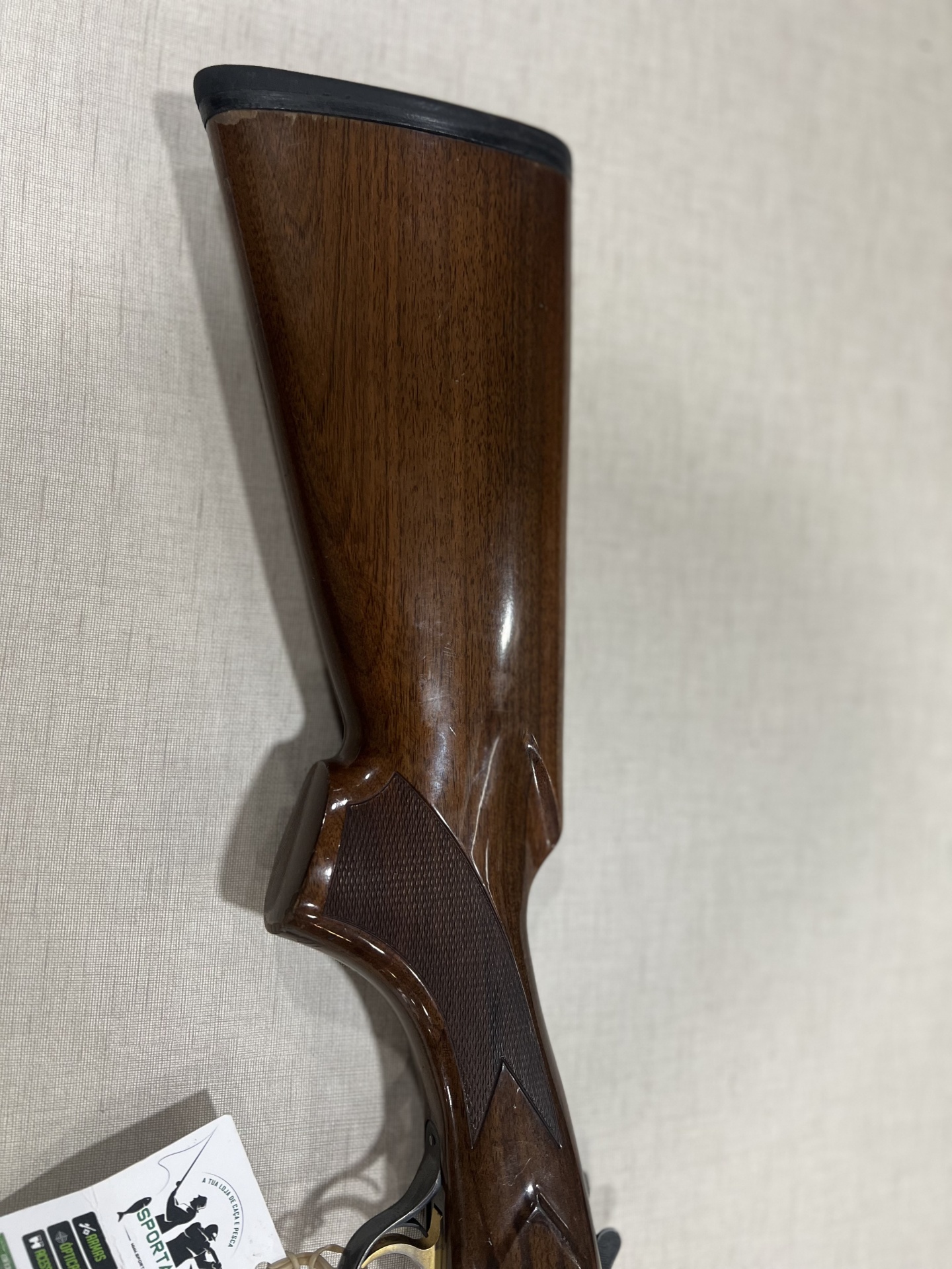 Espingarda de canos emparelhados com acabamento em madeira e metal gravado