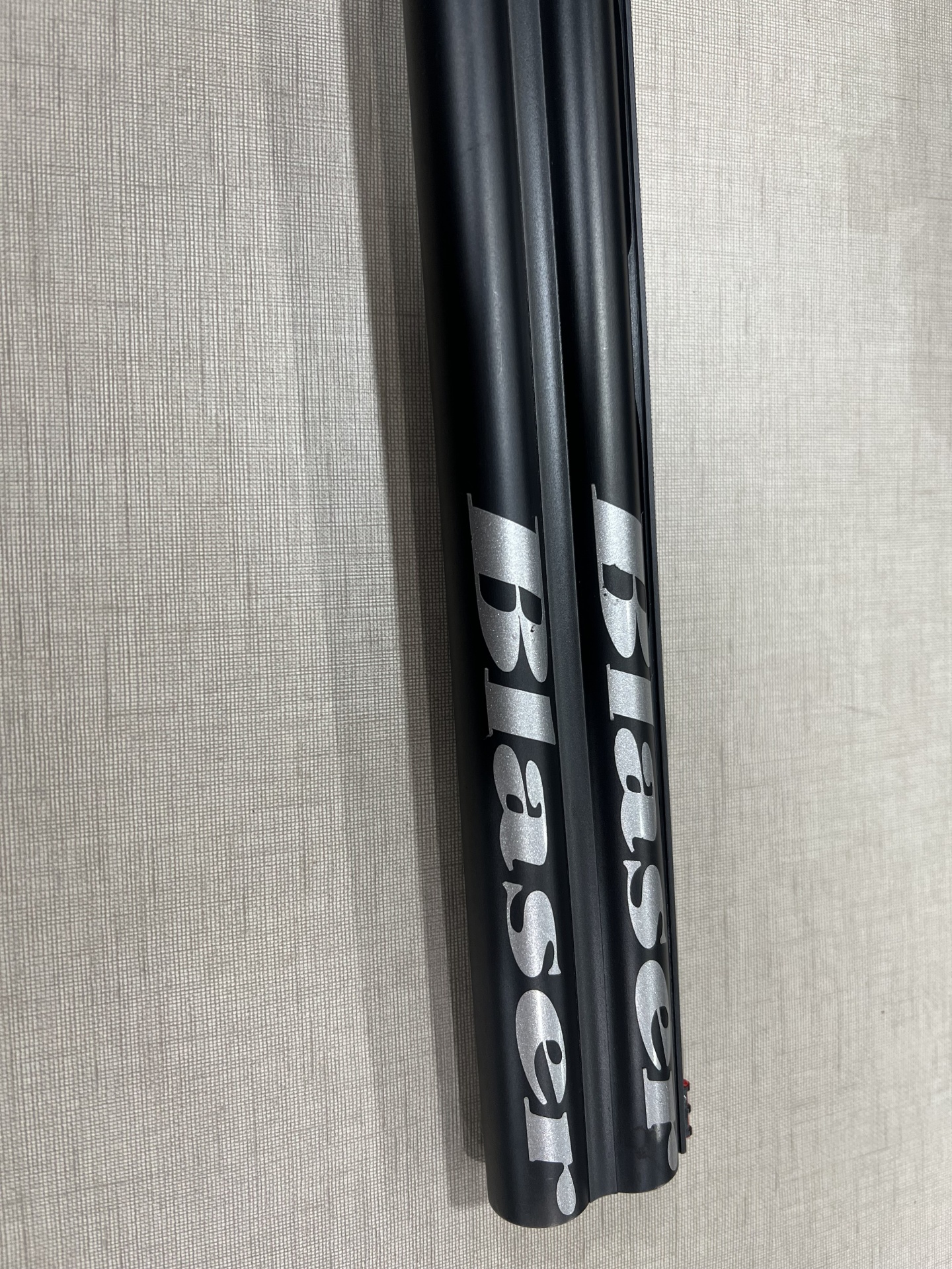 Três cañas negras com texto branco Blaser sobre superfície bege