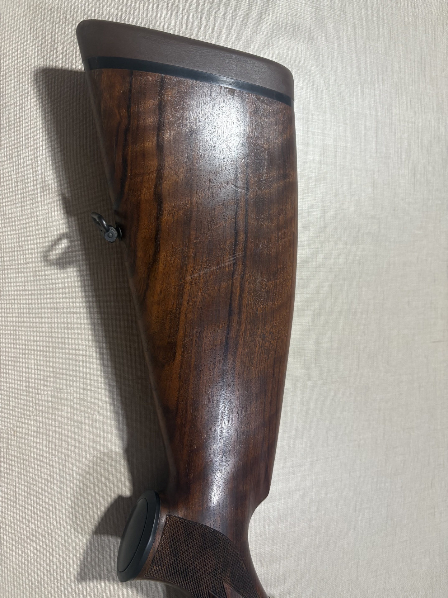 espigão de arma de madeira castanha com borracha preta e gancho