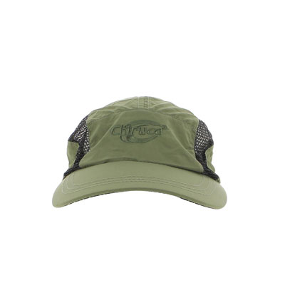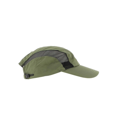 Boné desportivo verde-oliva com malha preta nas laterais
