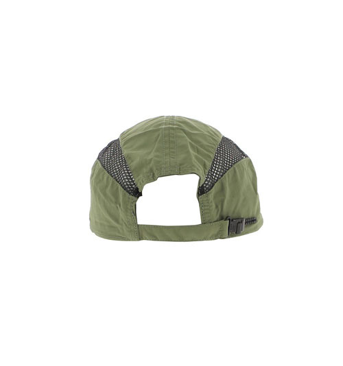 Boné verde-oliva com aba curva e laterais em malha preta