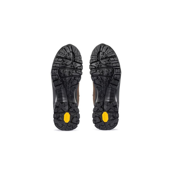 Bota de caminhada castanha com sola preta Vibram e fecho rápido