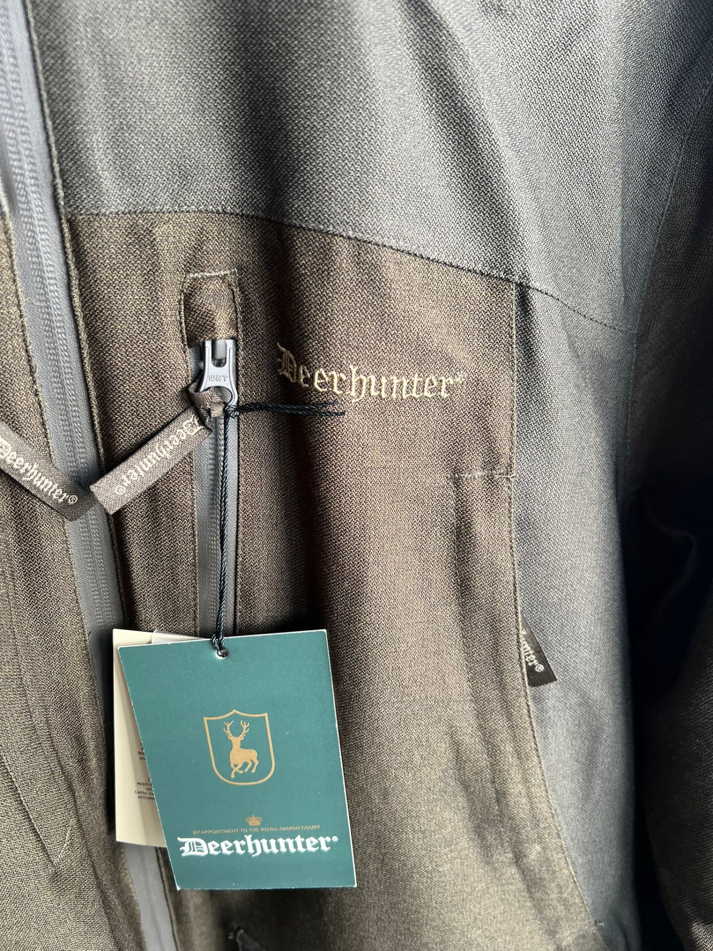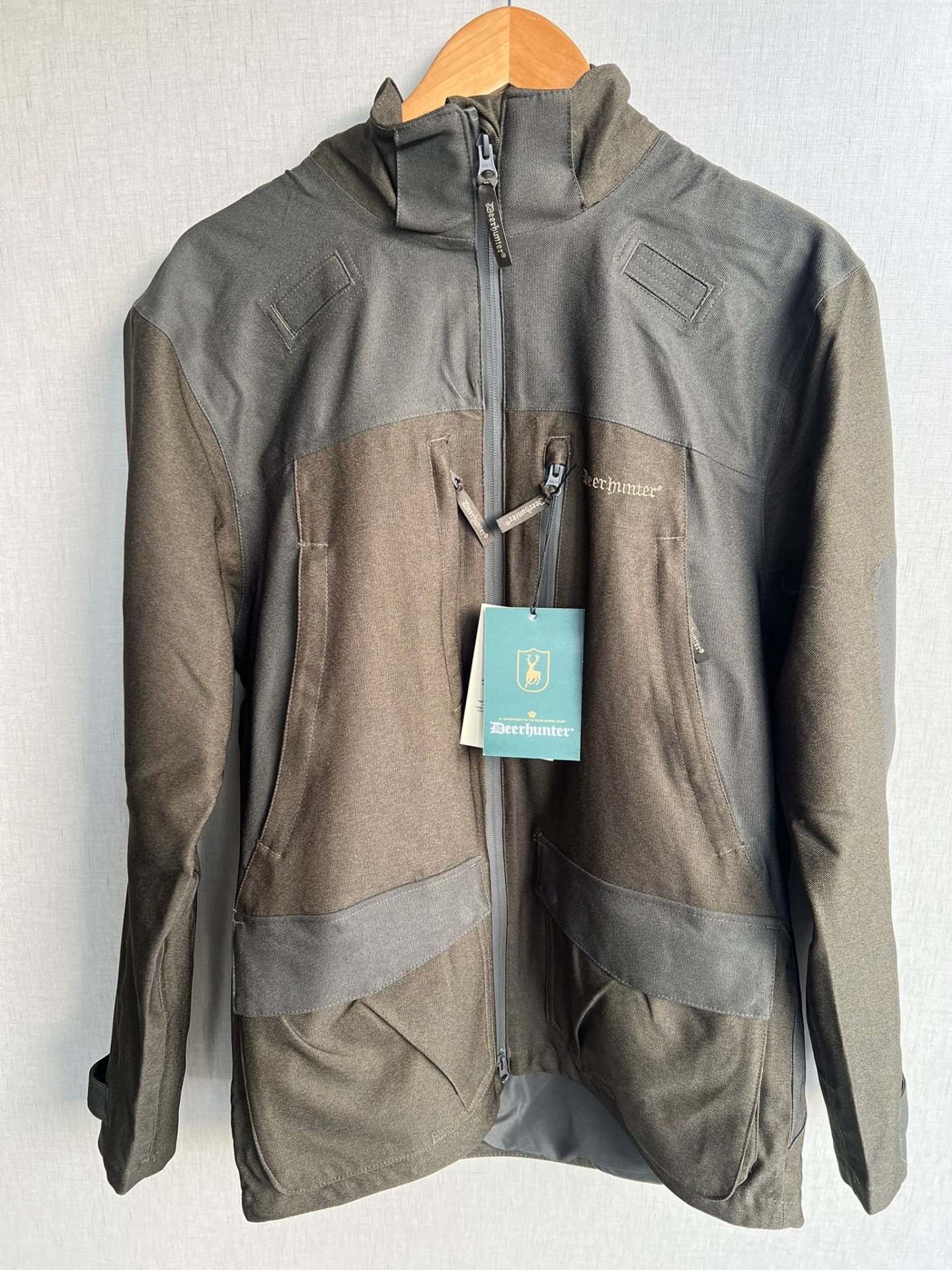 Casaco Deerhunter bicolor cinzento e castanho com etiqueta verde e fecho