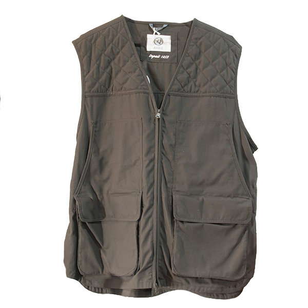 Colete castanho com fecho de correr e bolsos grandes