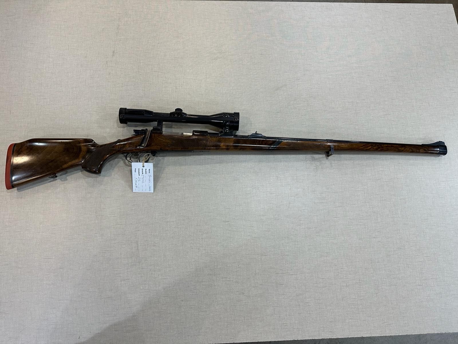 Espingarda de caça com coronha de madeira e mira telescópica preta