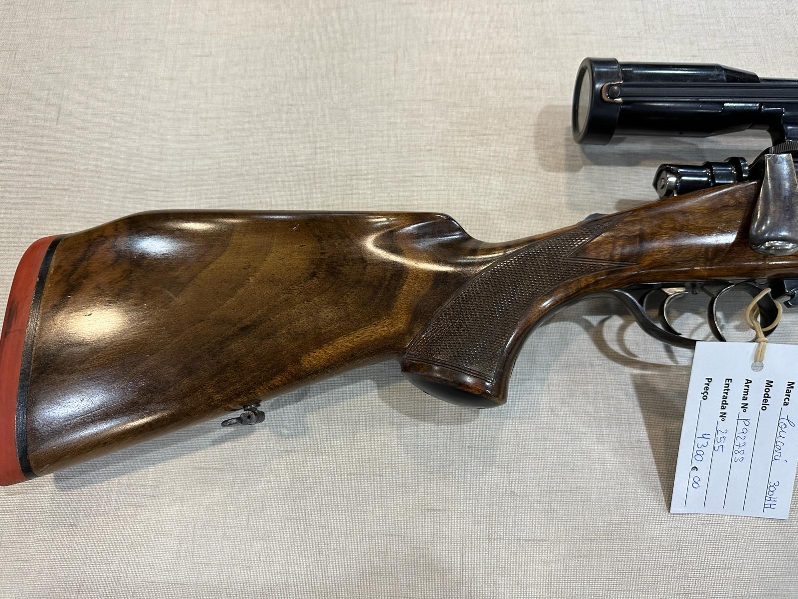 Espingarda com coronha de madeira e luneta preta montada