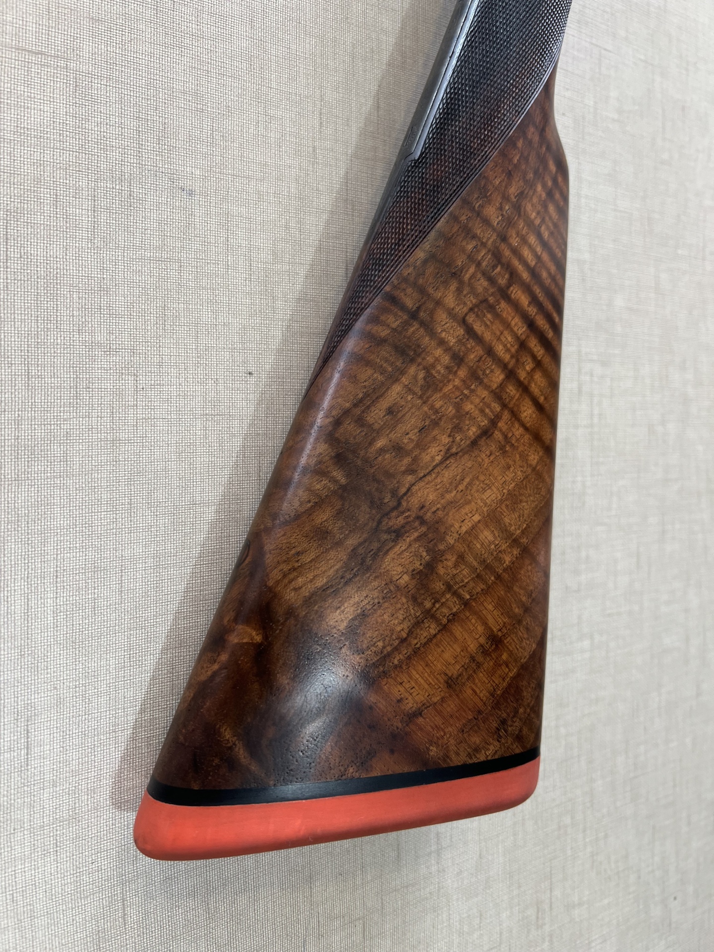 Coronha de espingarda em madeira castanha com apoio vermelho