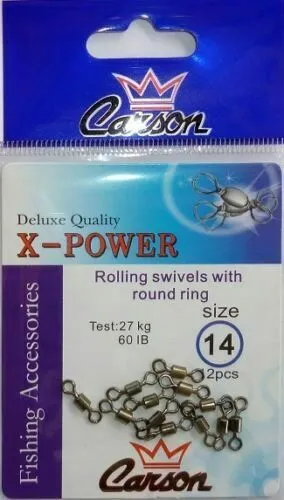 Embalagem de giratórios de pesca Carson, tamanho 14, 2 unidades, capacidade 27 kg.