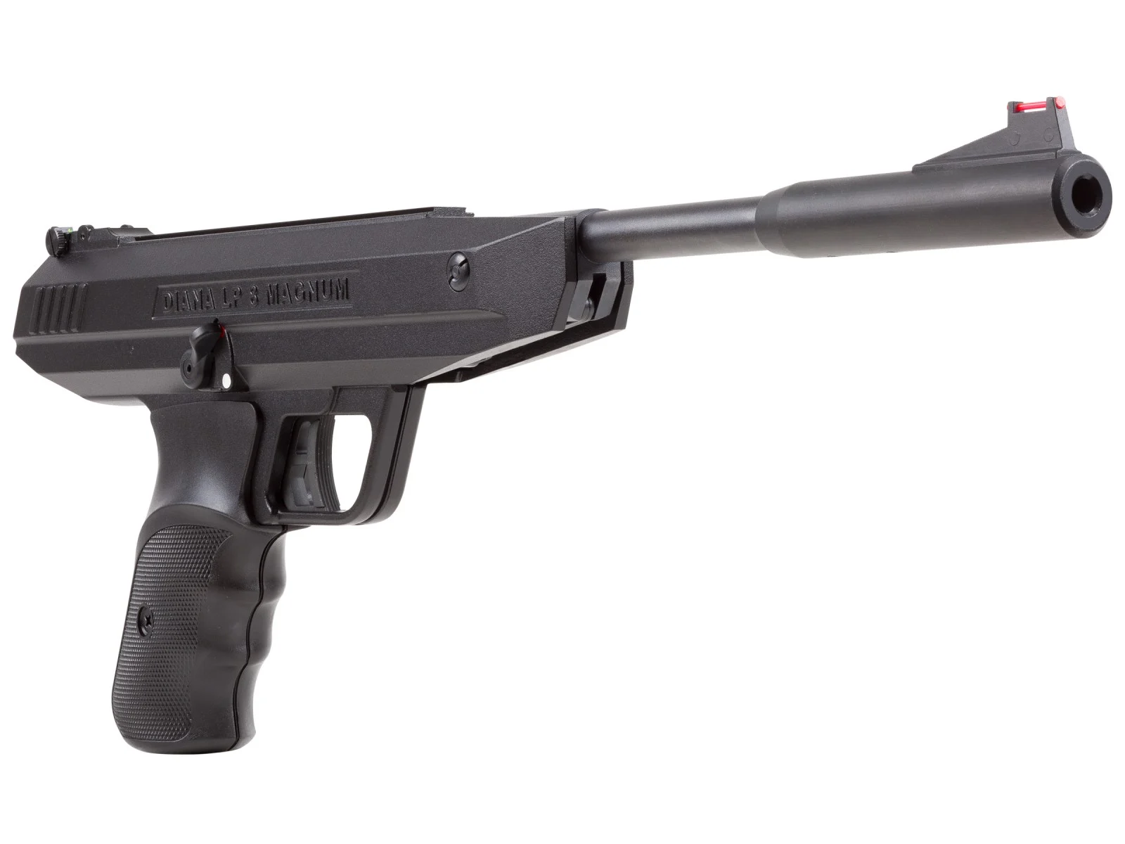 Pistola de ar comprimido preta DIANA LP 8 MAGNUM com mira vermelha e empunhadura anatómica