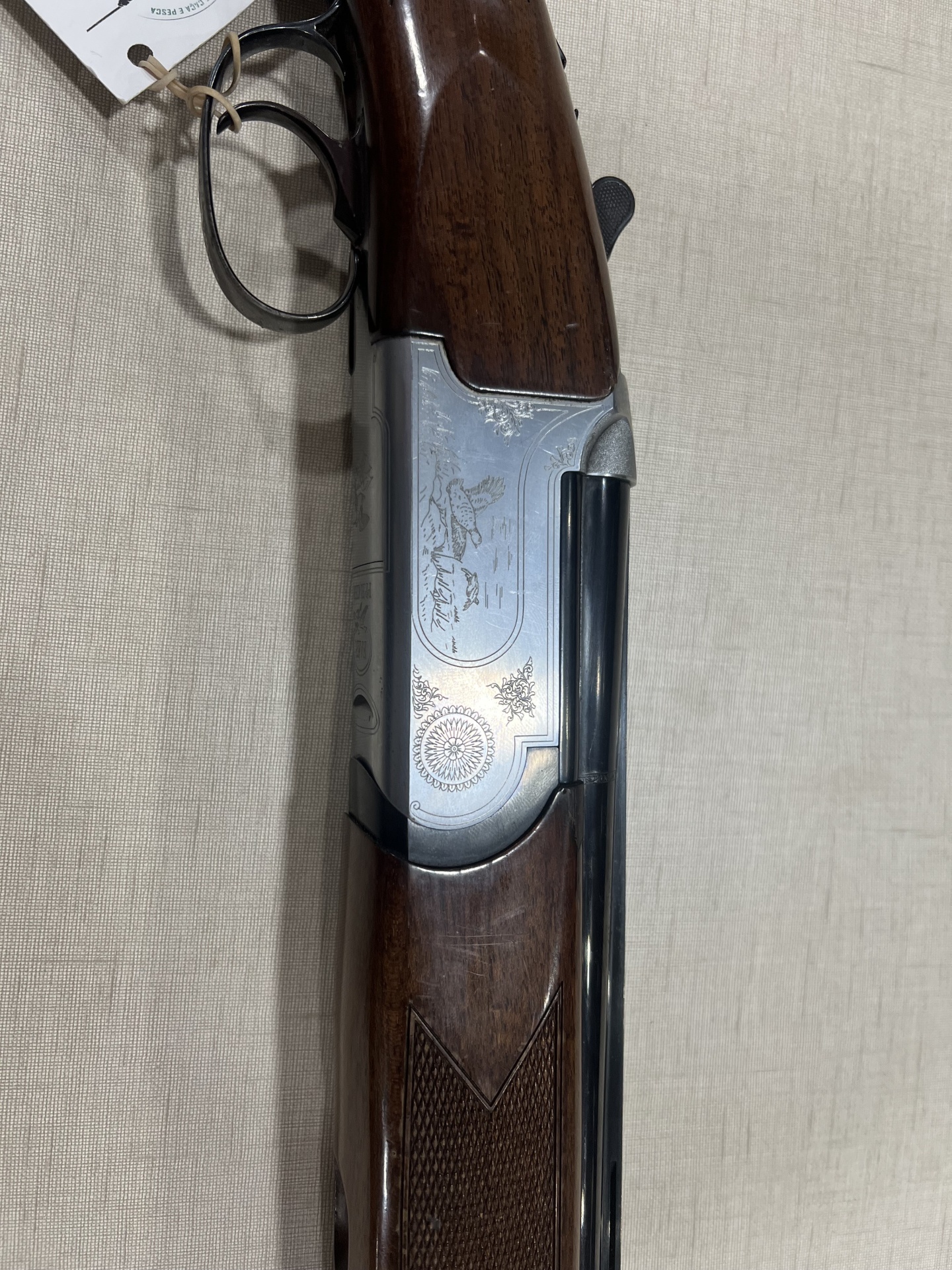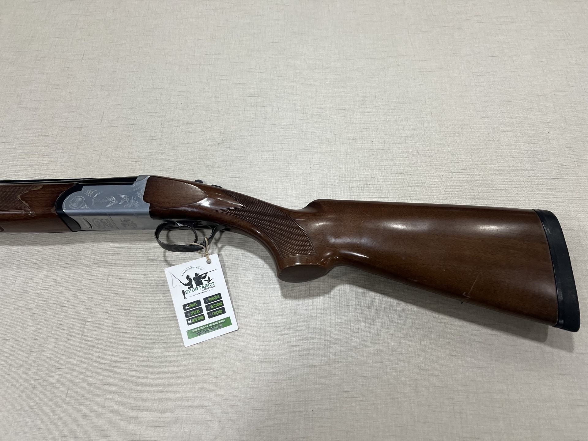 Espingarda de caça com madeira e gravações em aço
