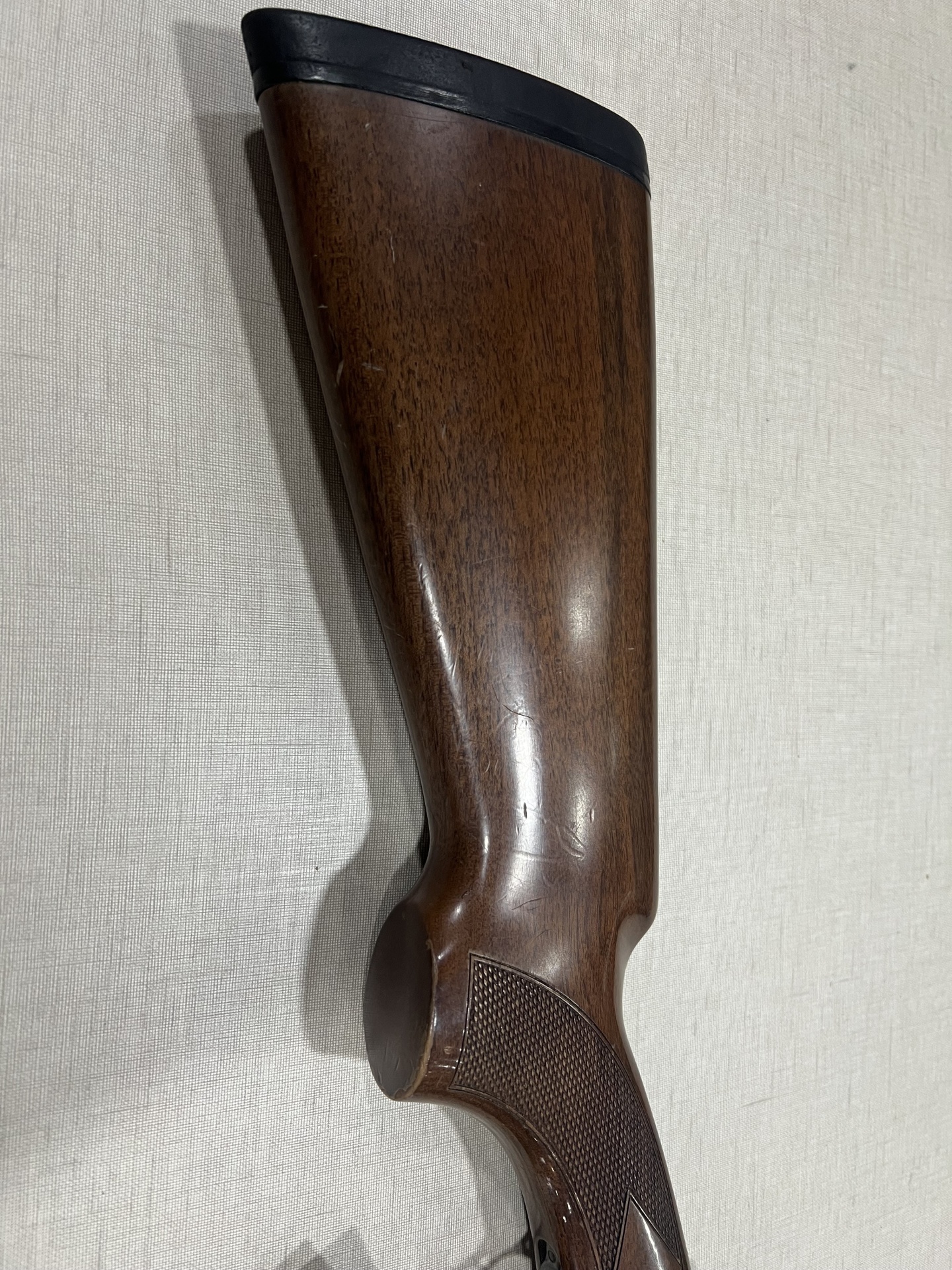Coronha de espingarda em madeira castanha com reforço preto