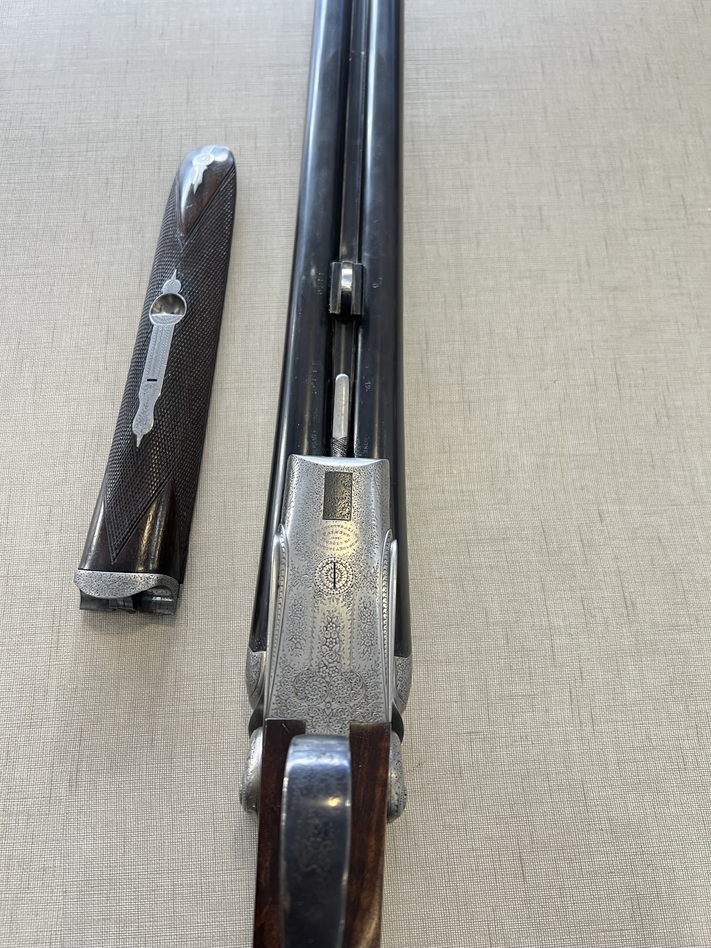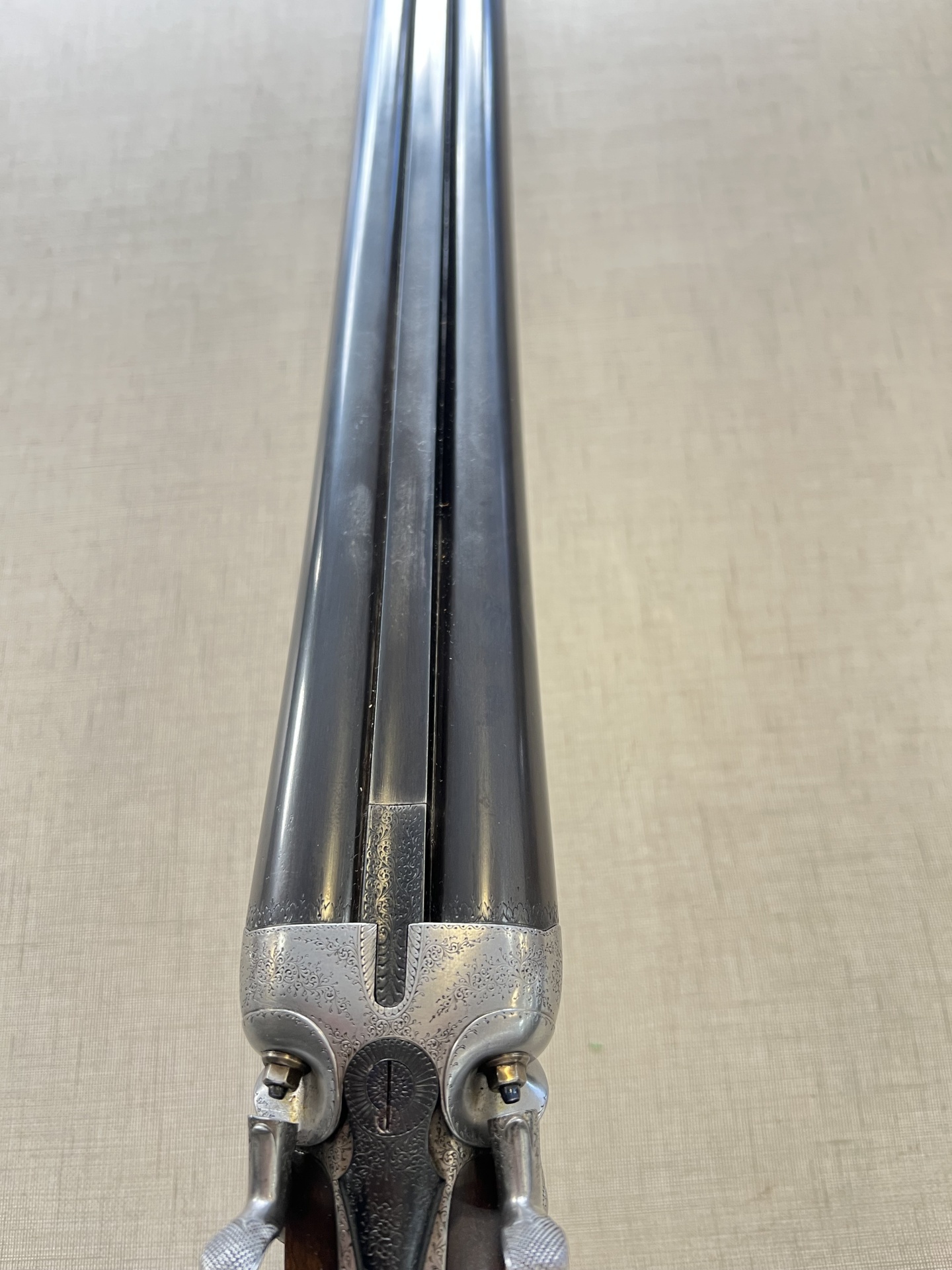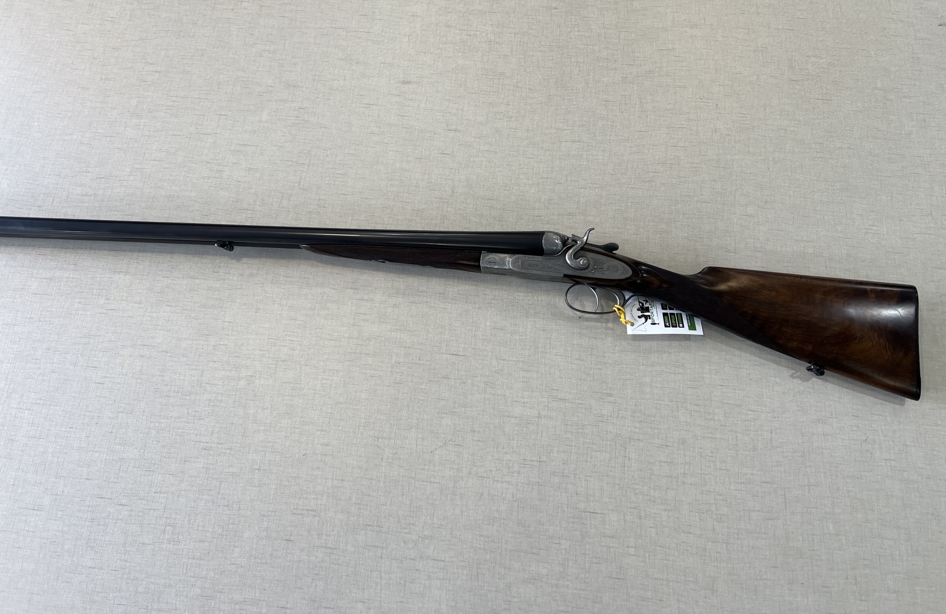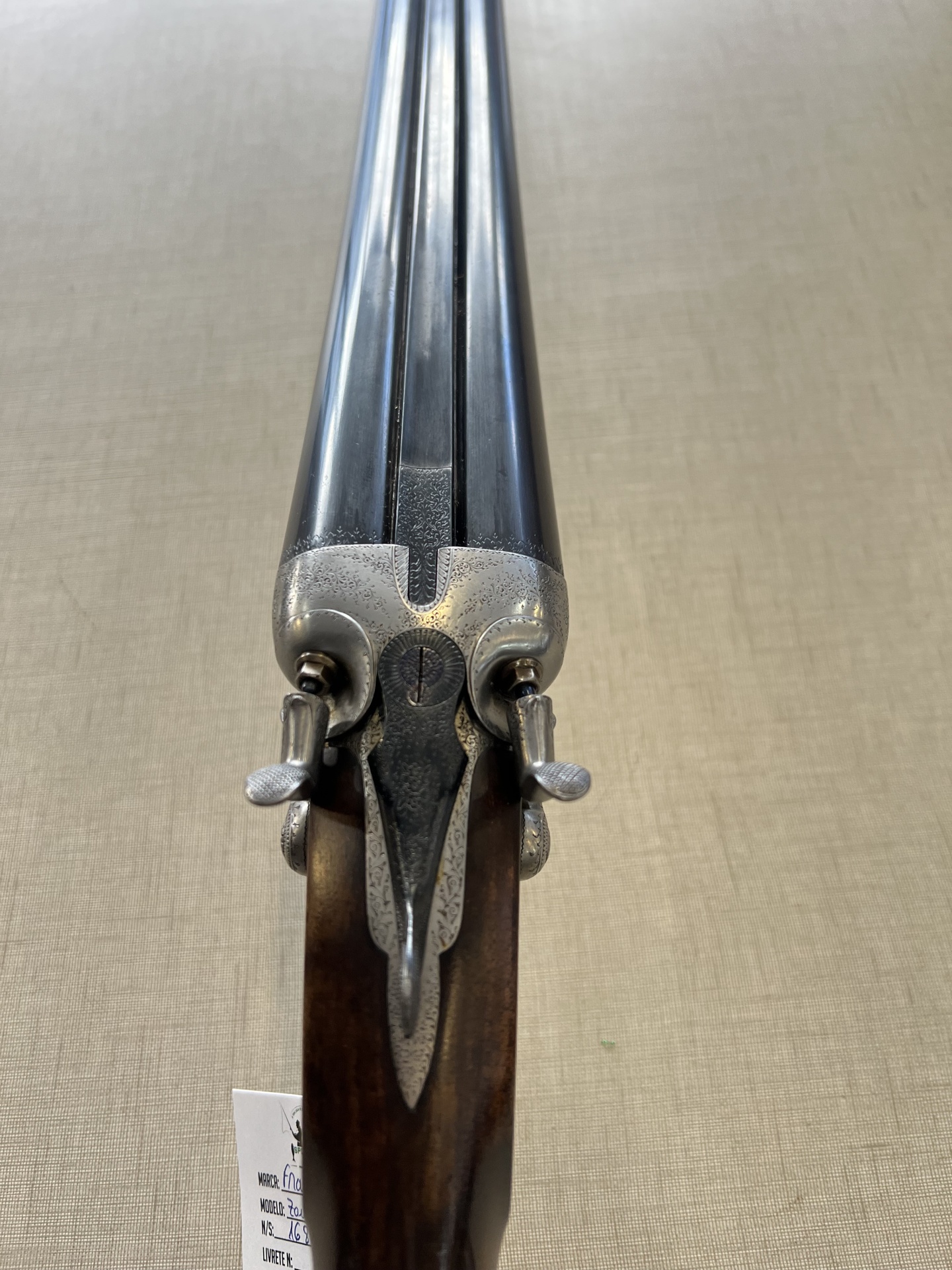 Espingarda de canos duplos paralelos com coronha de madeira e gatilho duplo
