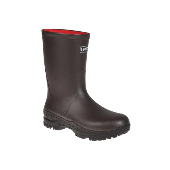 Bota de borracha preta com interior vermelho e etiqueta HARRIER