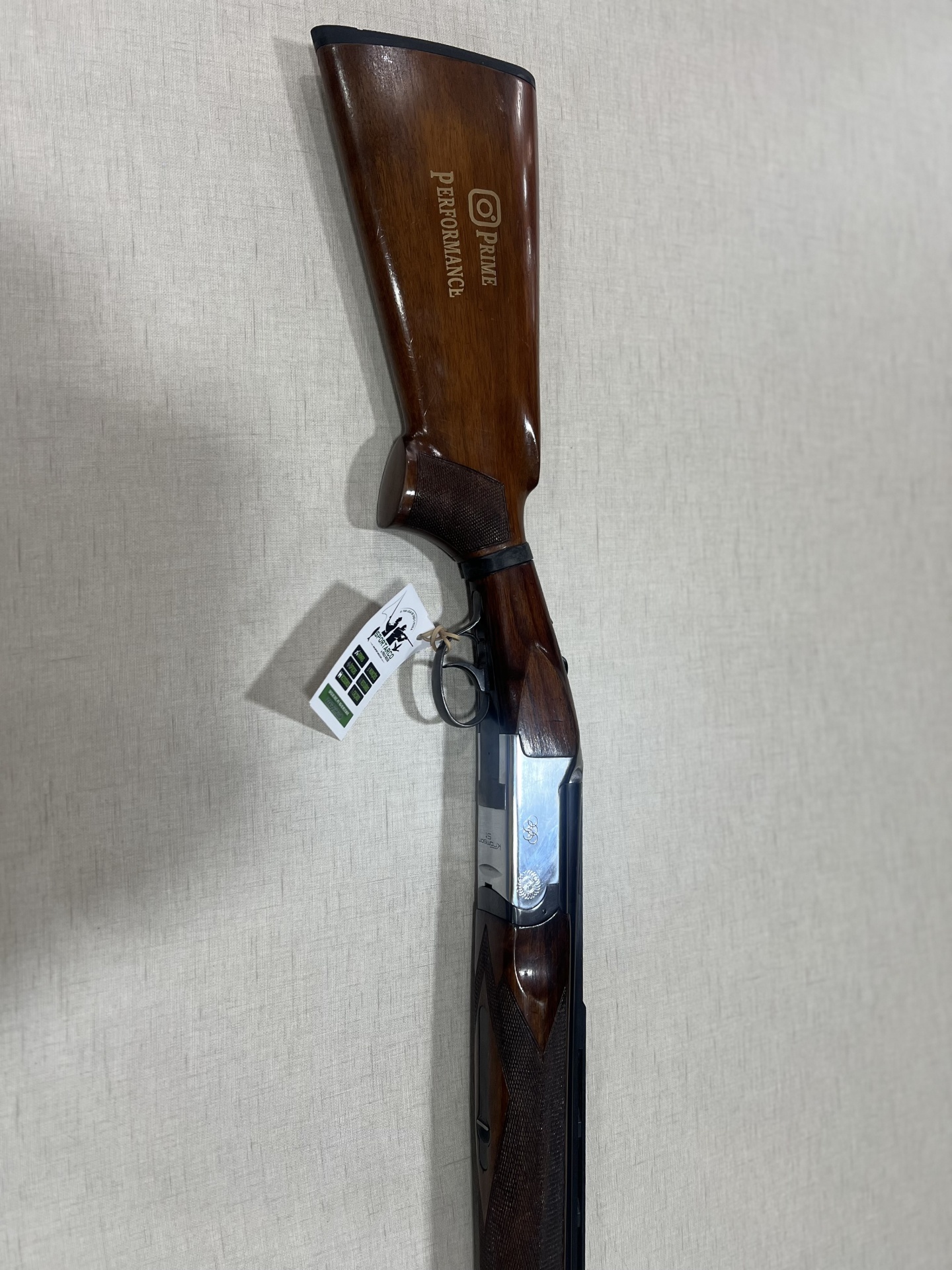 Espingarda de cano duplo com madeira castanha e metal prateado