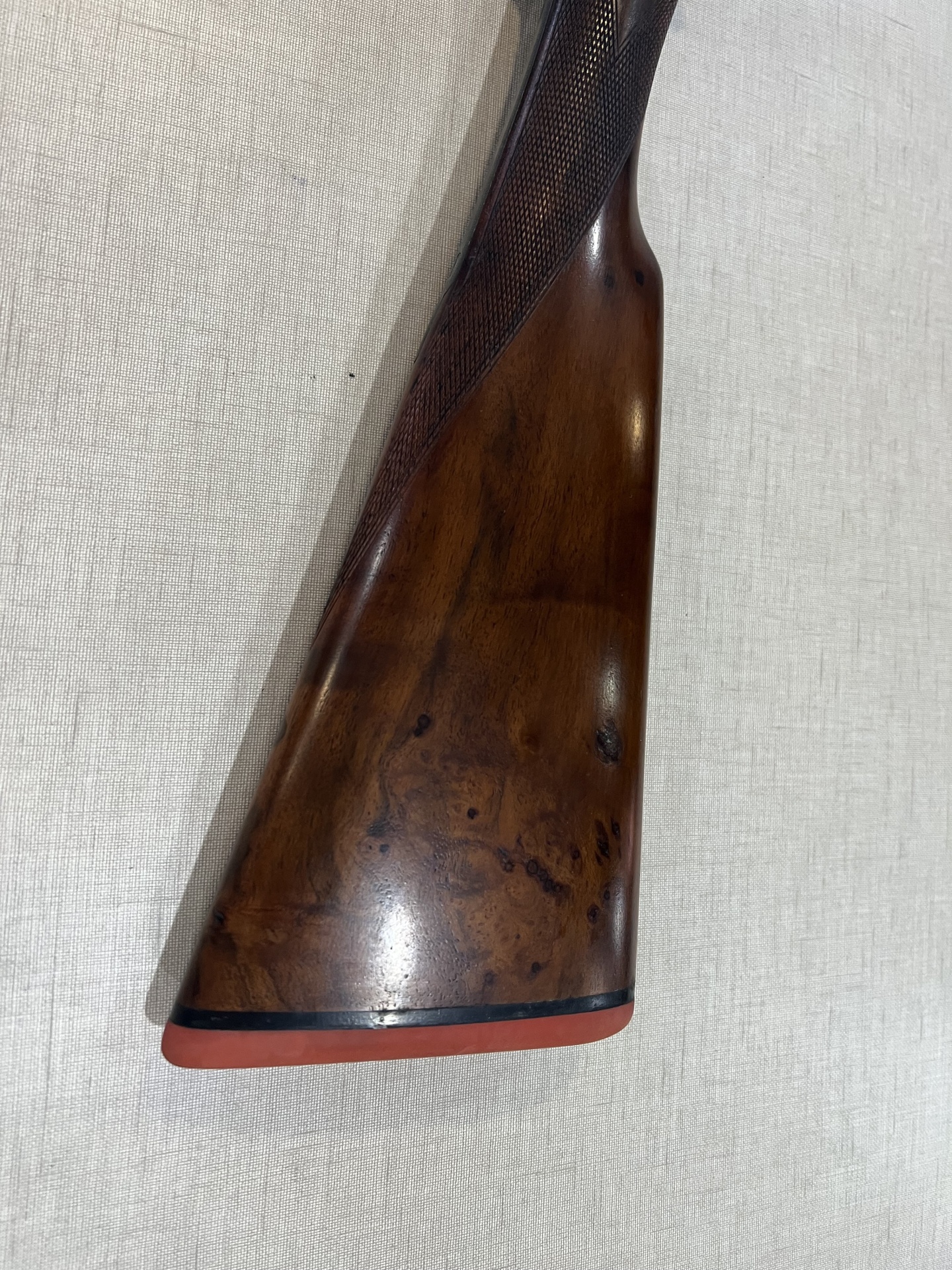 Coronha de madeira castanha escura de rifle com apoio de borracha vermelha
