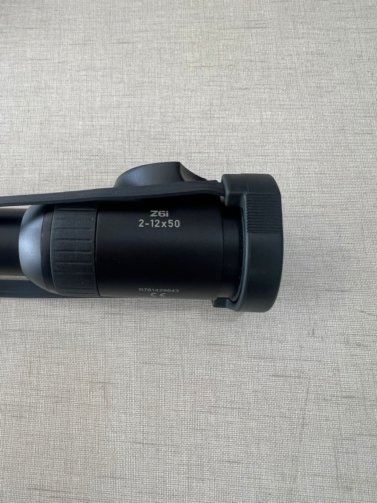 Luneta óptica preta Z6i 2-12x50 sobre fundo de tecido bege