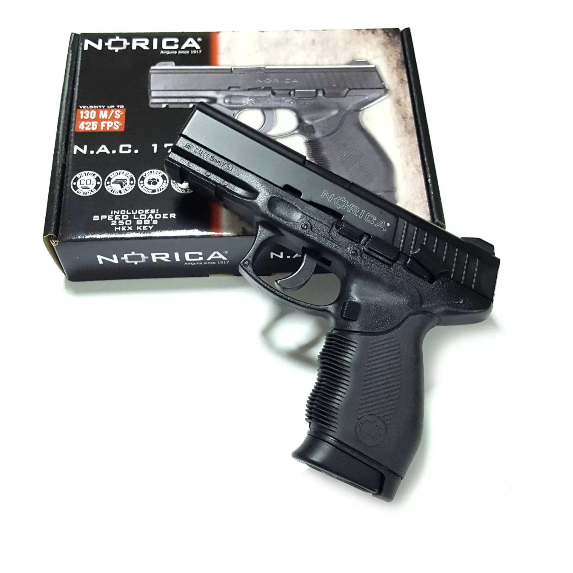 Pistola de ar comprimido preta Norica N.A.C. 17 com caixa