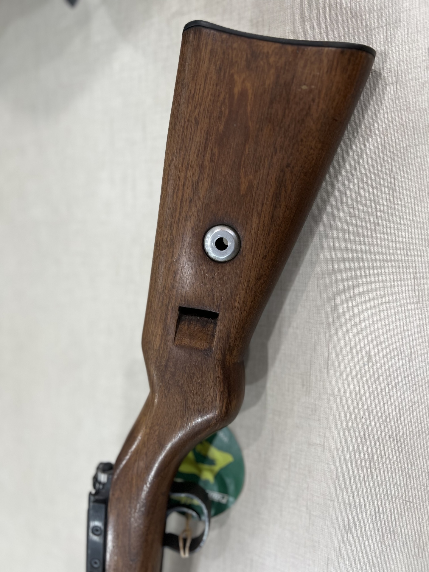 Carabina de madeira com etiqueta verde PAULON MUNICA.