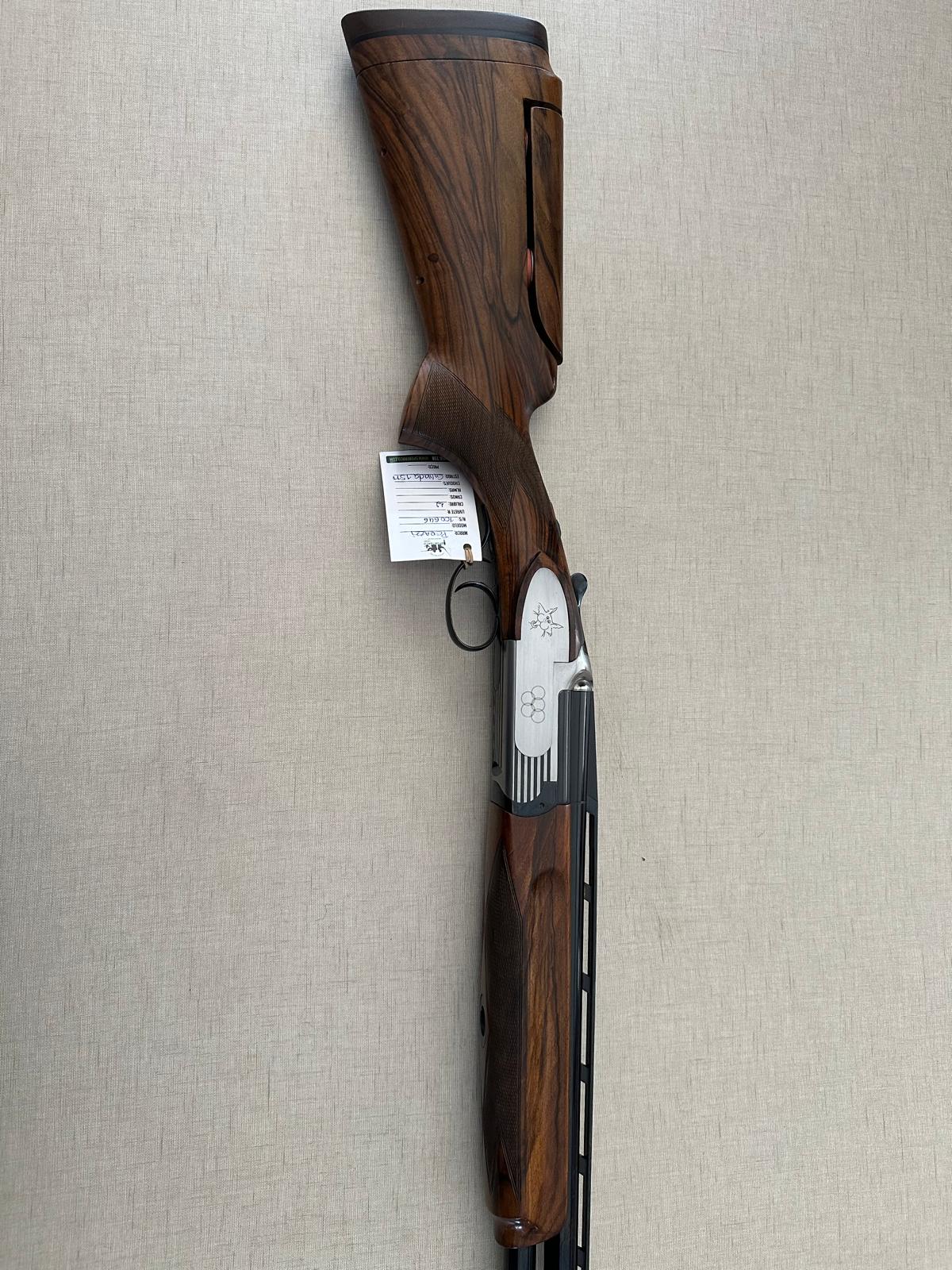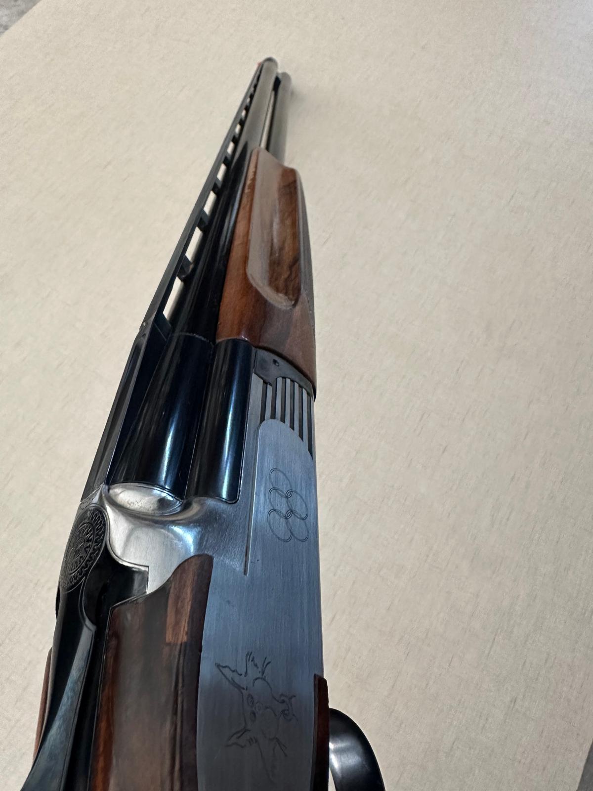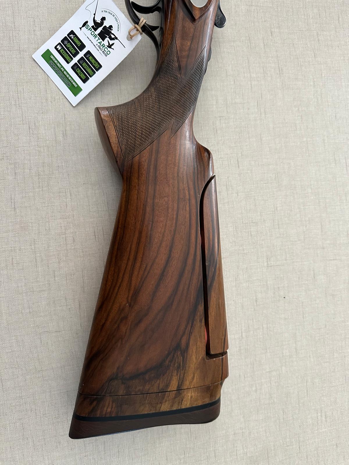 Espingarda de caça com coronha em madeira e aço polido com gravações e etiqueta SPORTARCO