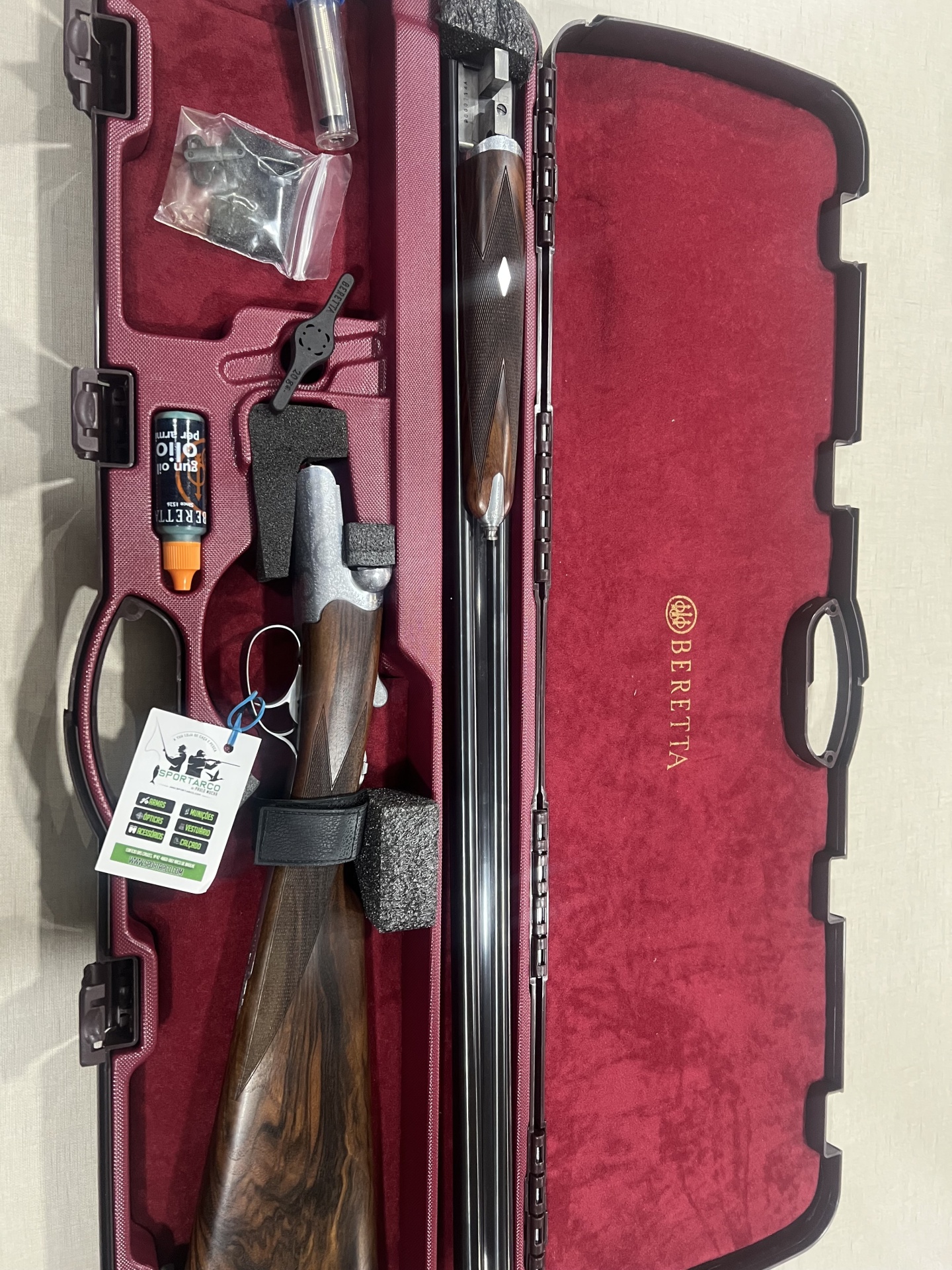 Espingarda Beretta desmontada em estojo com interior vermelho