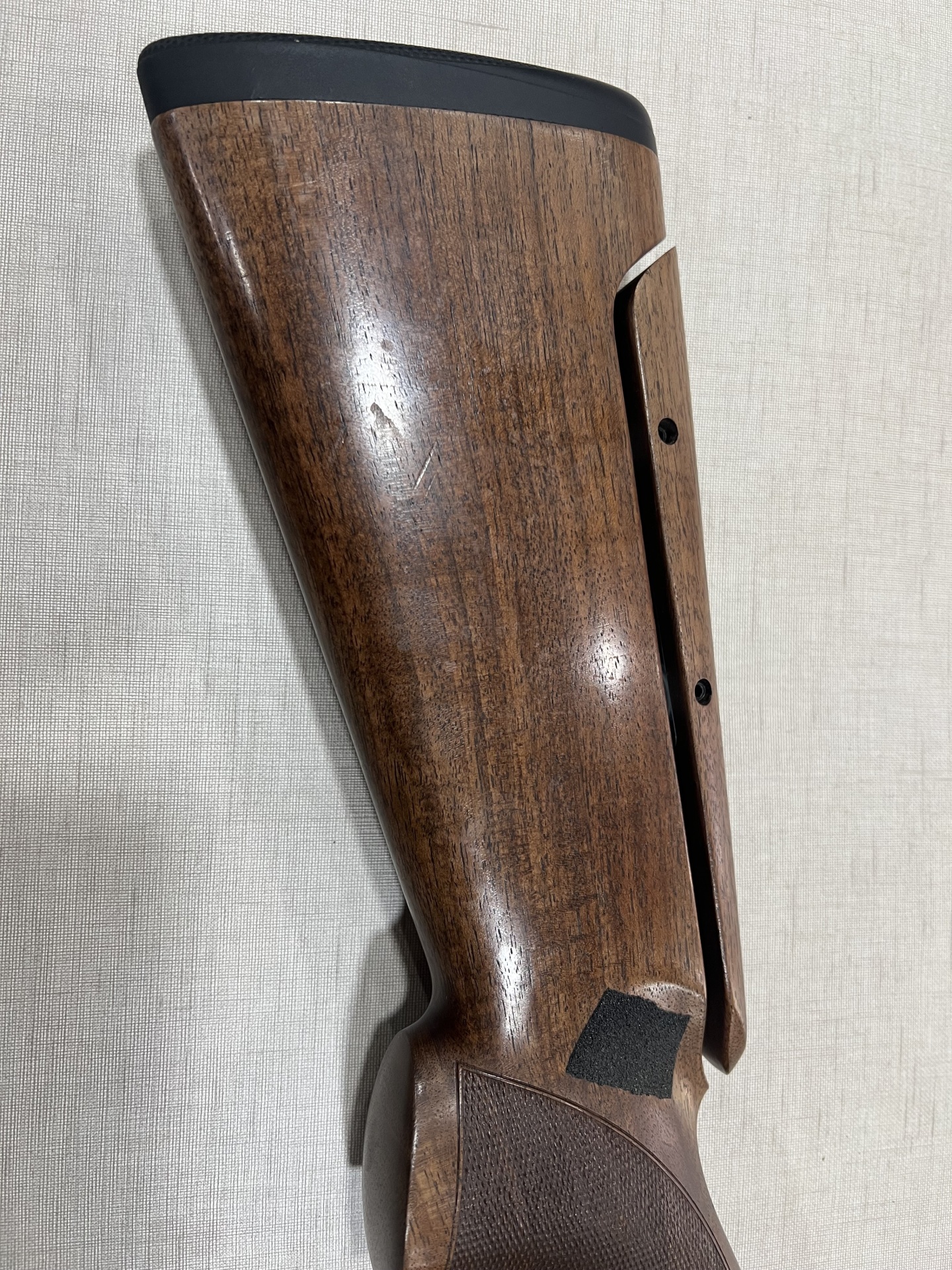 Ponteira de espingarda em madeira castanha com detalhe preto