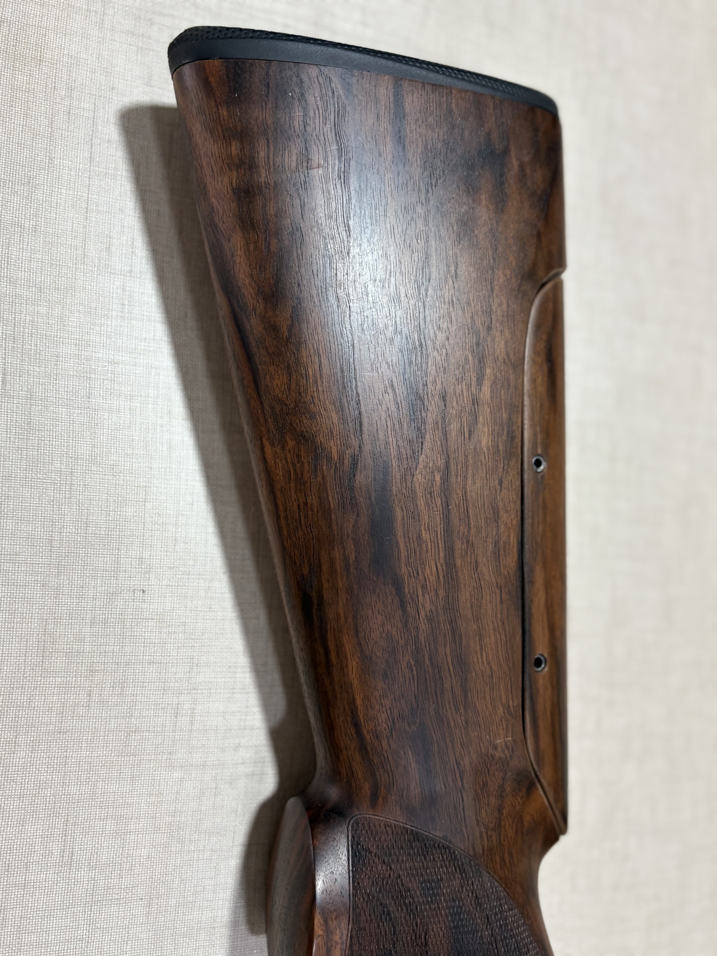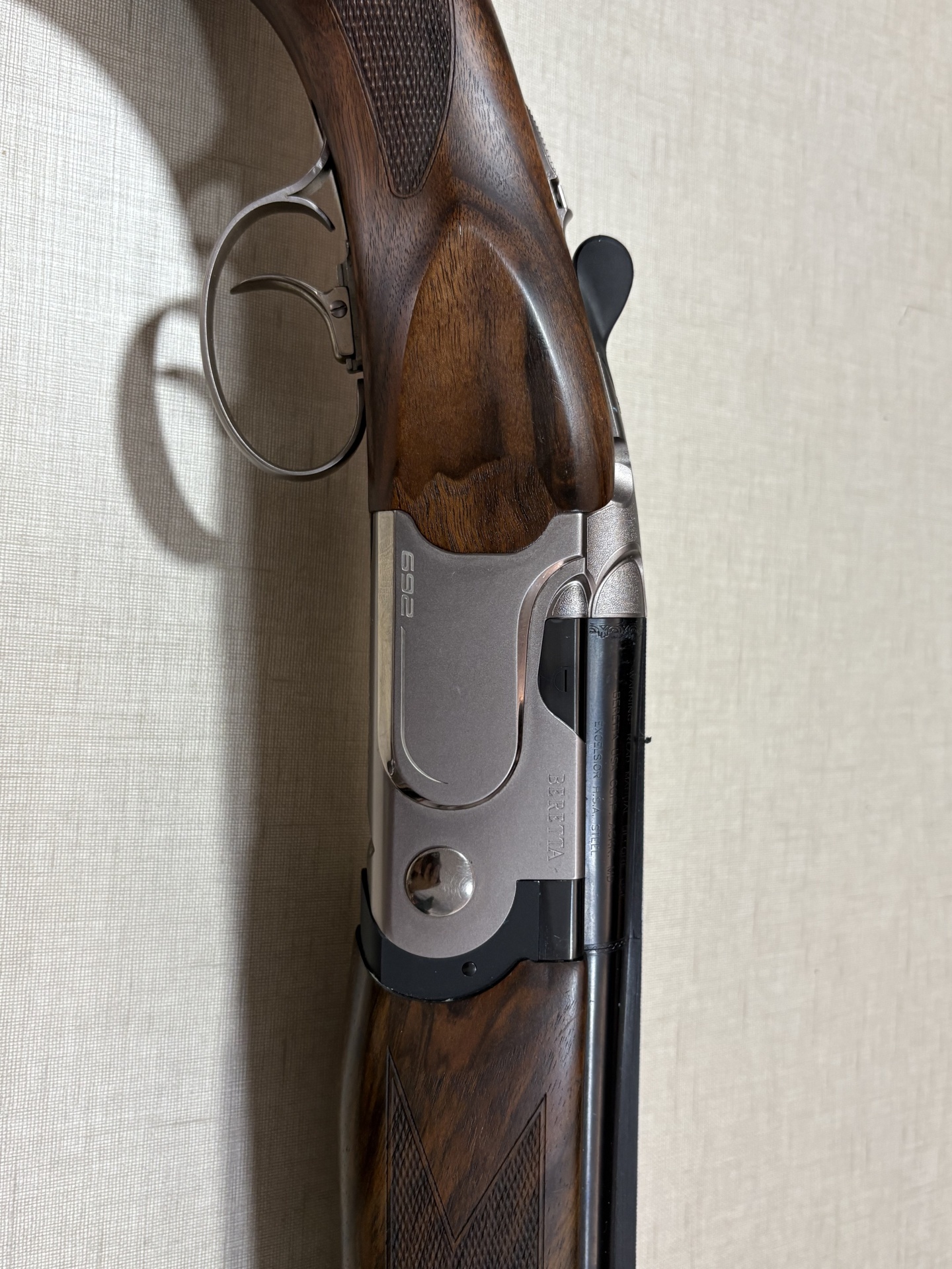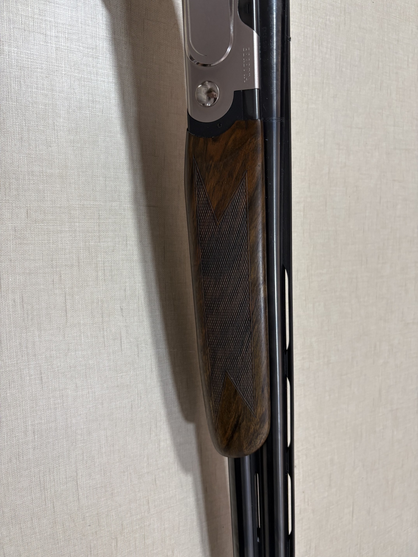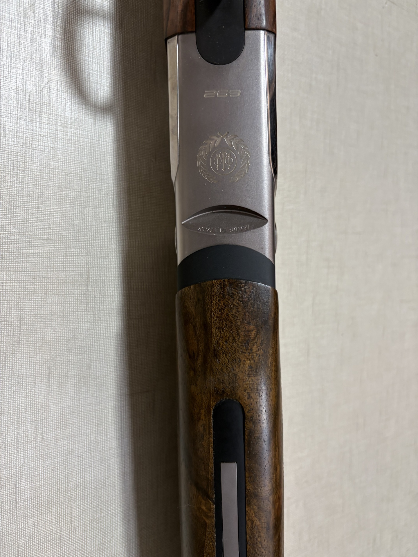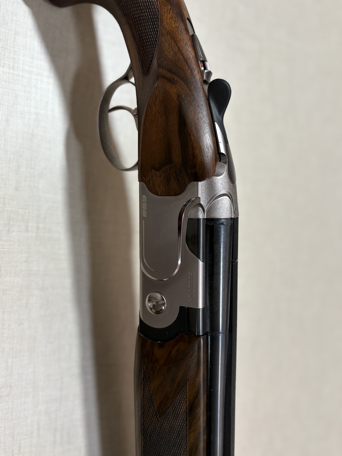Escopeta Beretta 692 com coronha de madeira castanha e canos metálicos