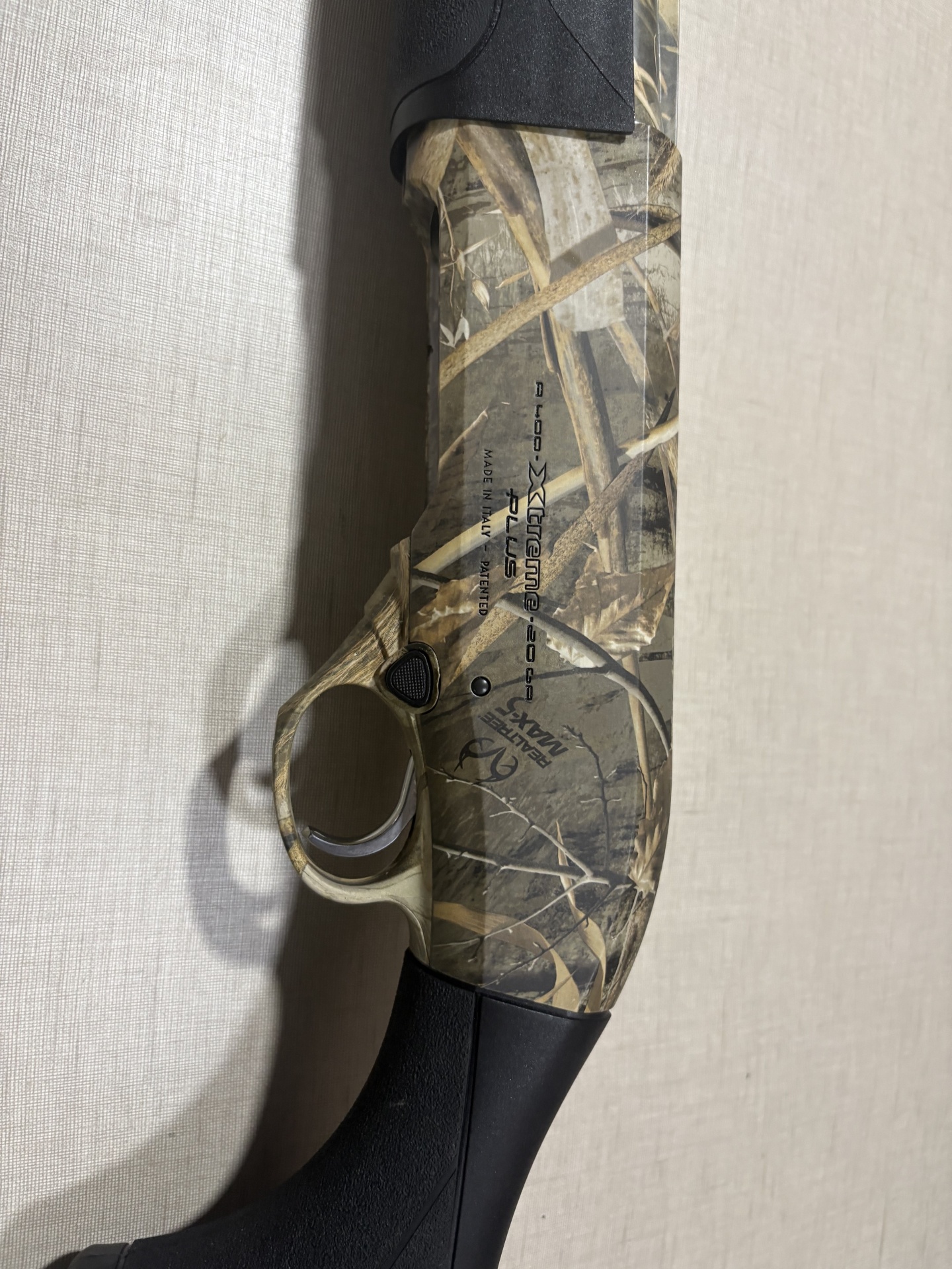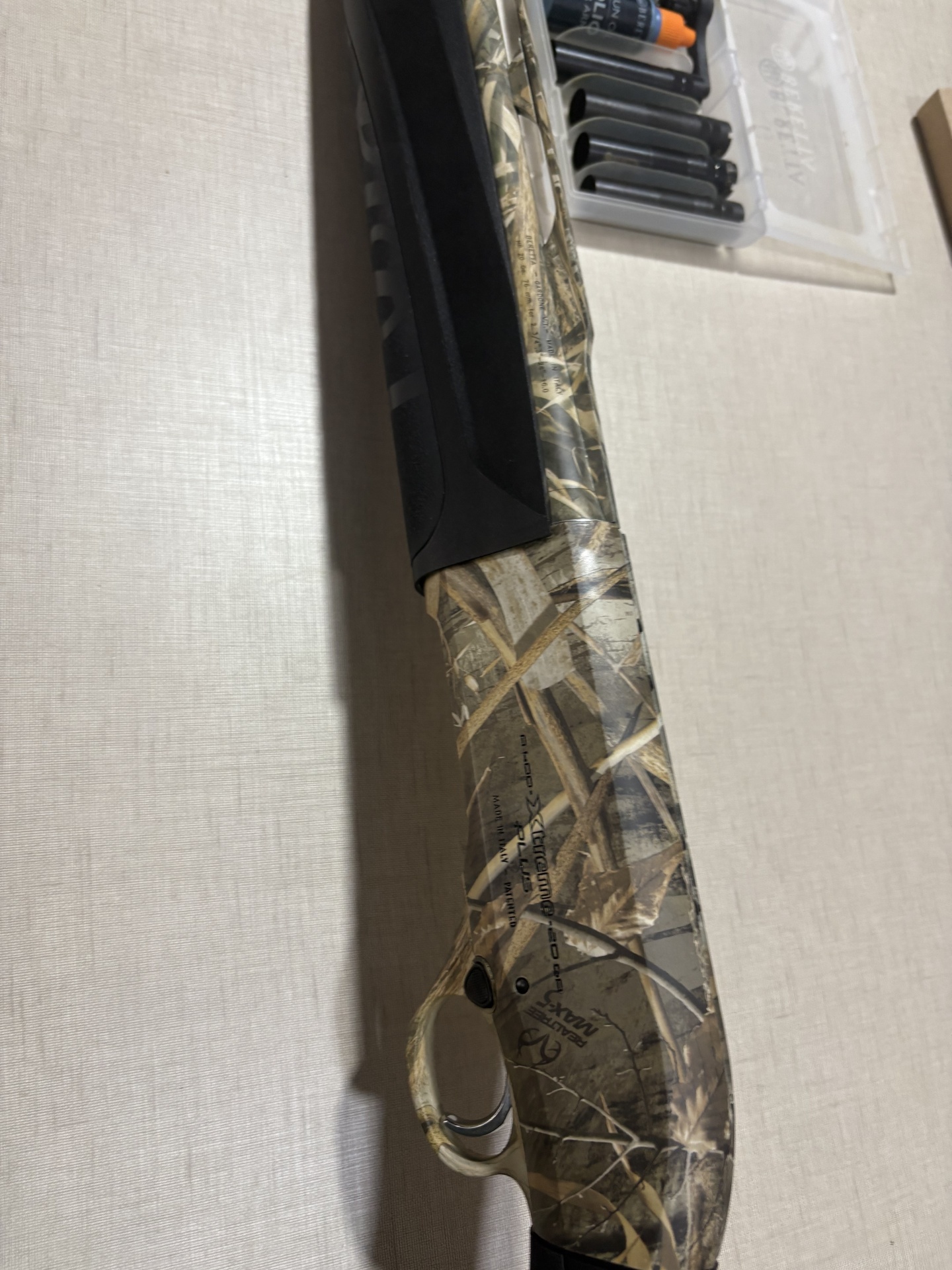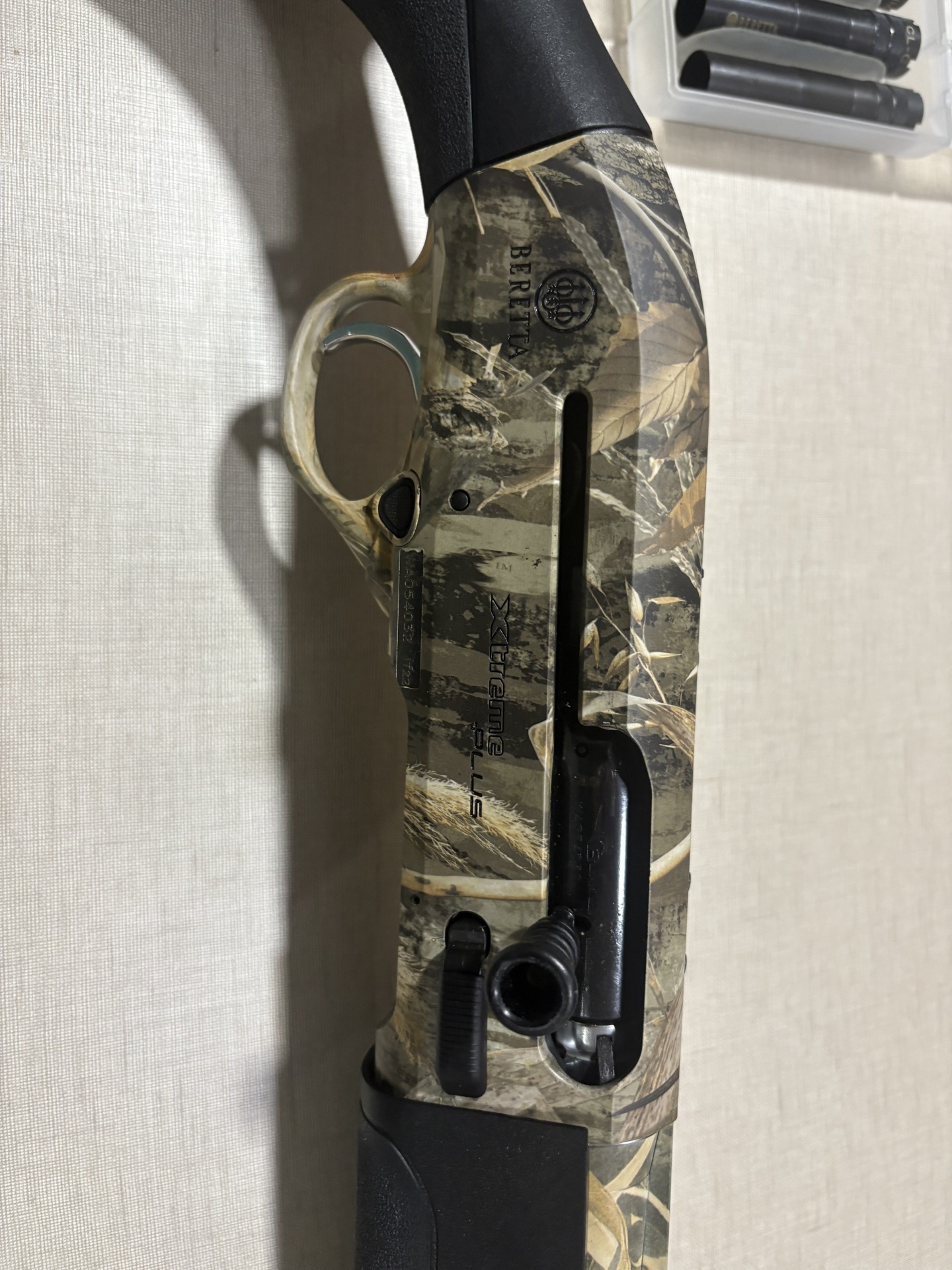 Caça Beretta Xtreme Plus em camuflagem com cabo preto e detalhes metálicos
