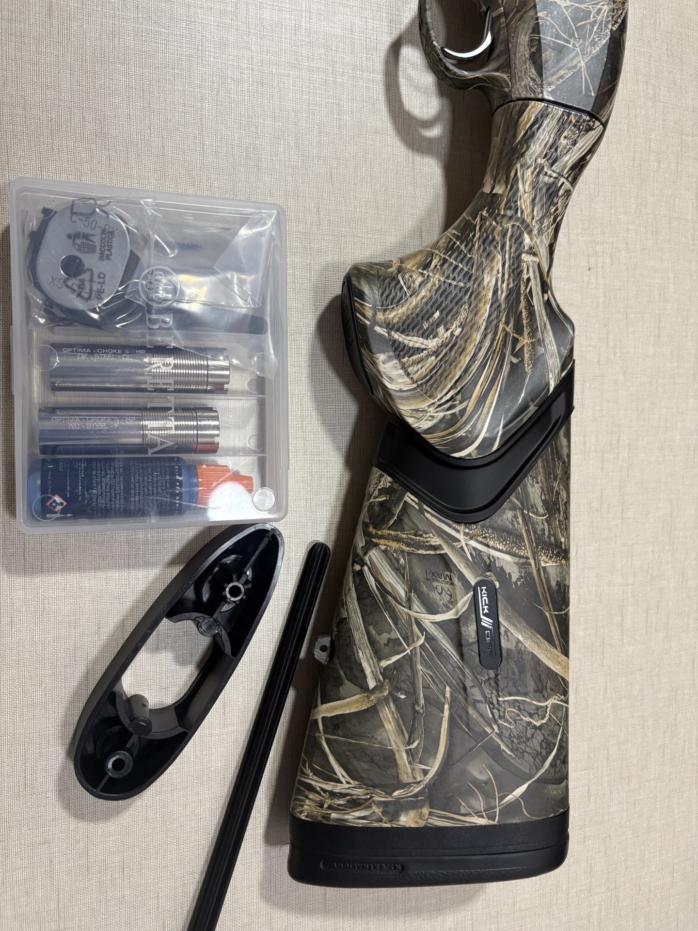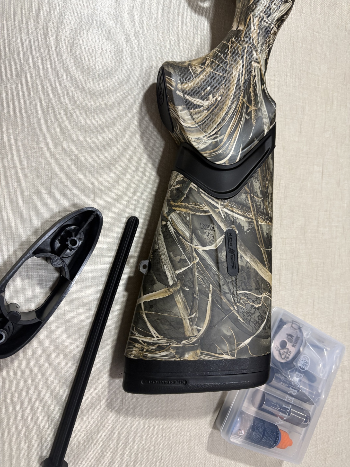Espingarda camuflada com acessórios e caixa plástica Beretta