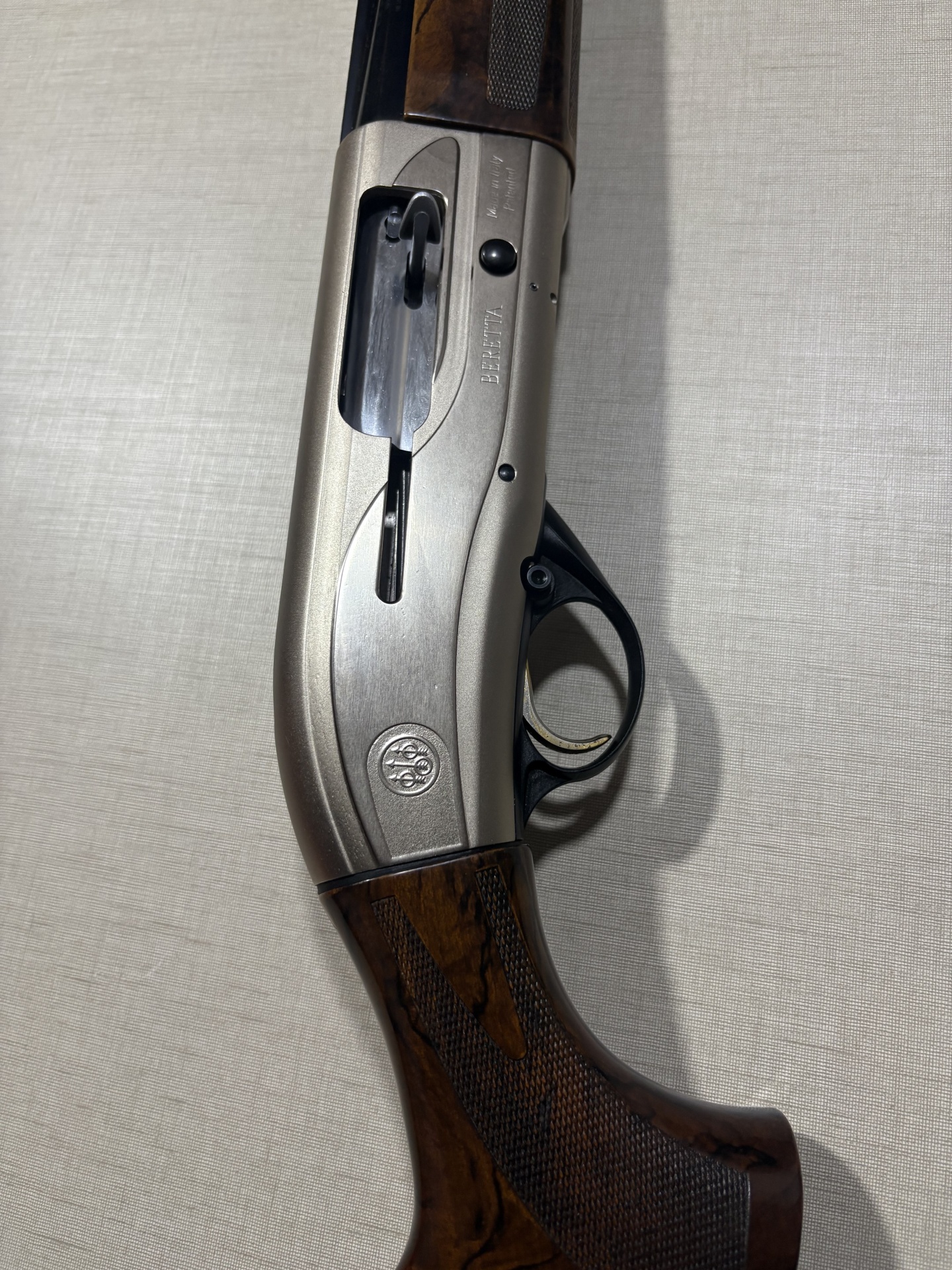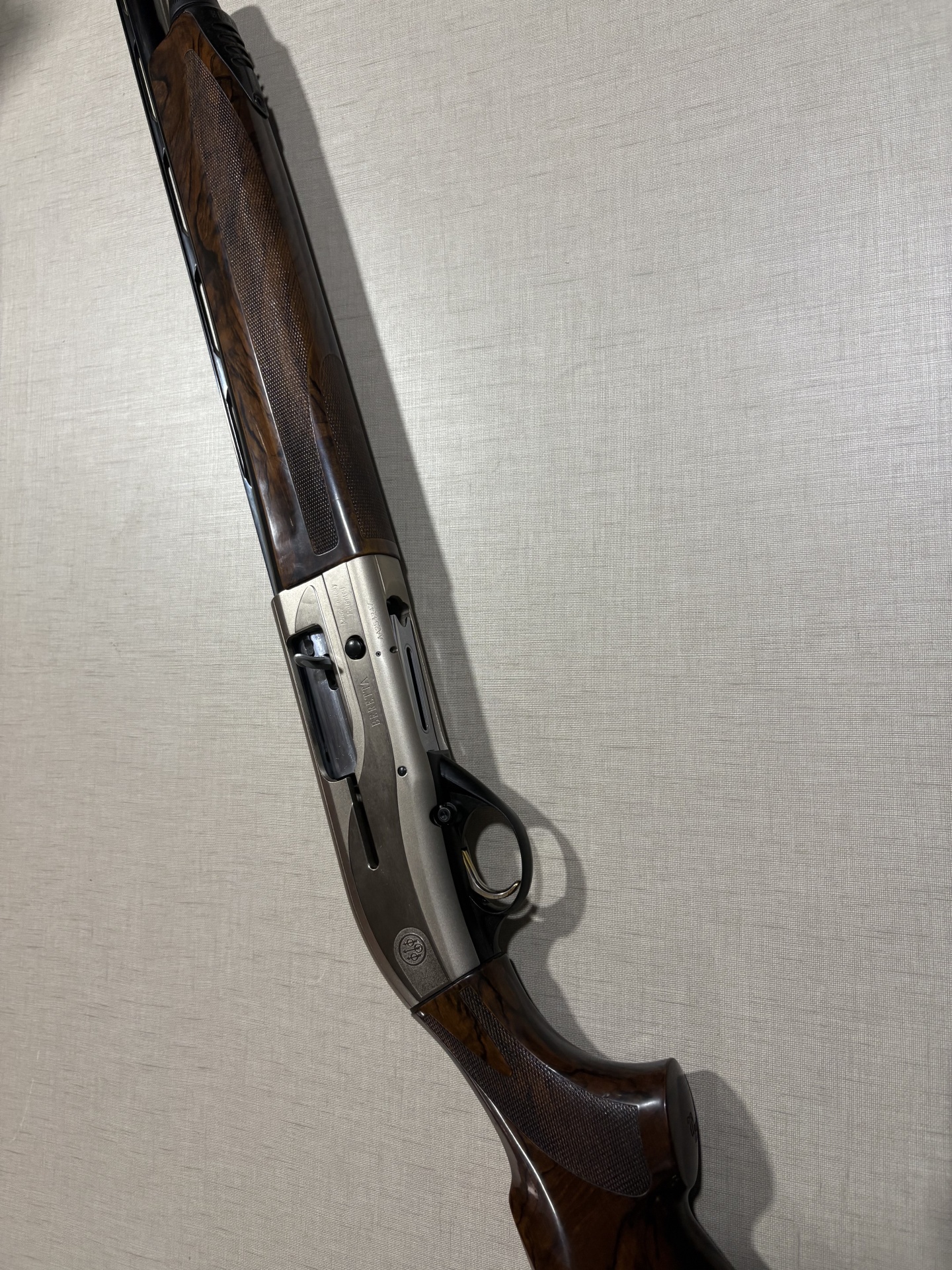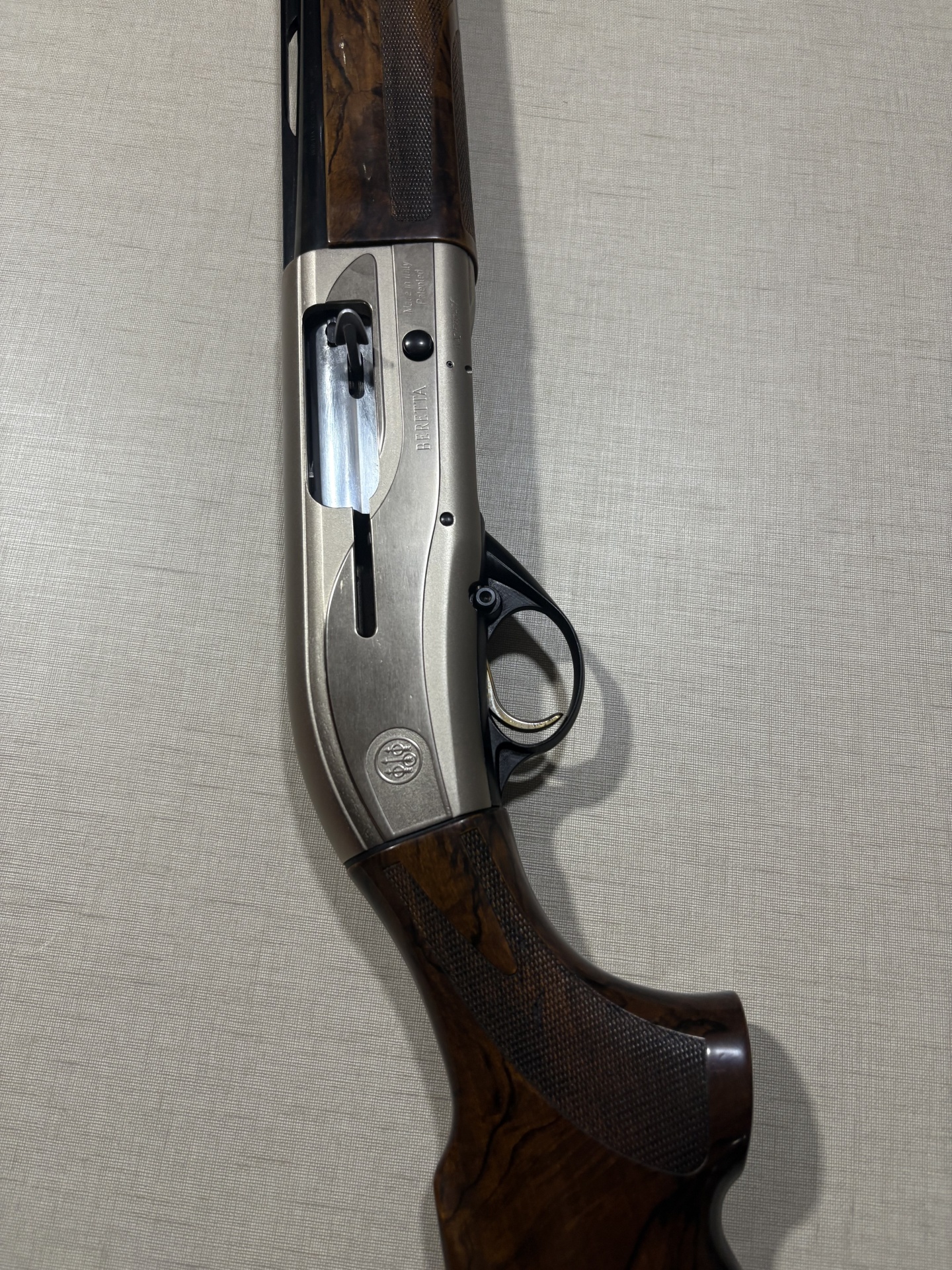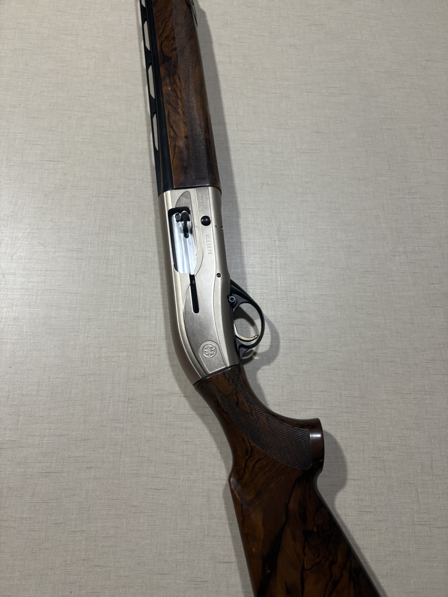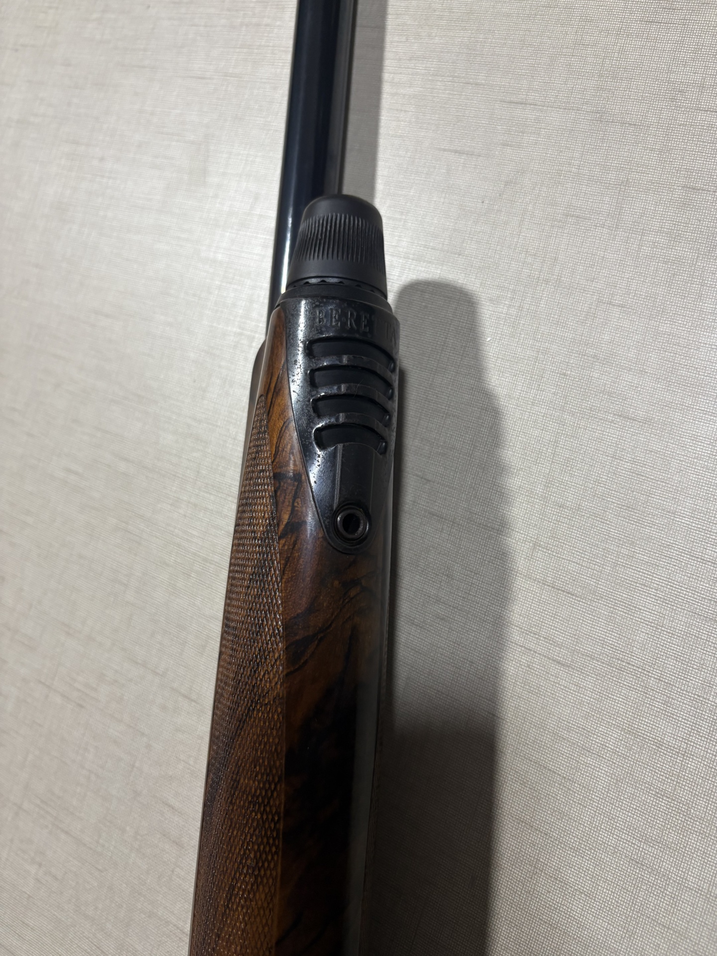 Espingarda Beretta com madeira castanha e metal cinza