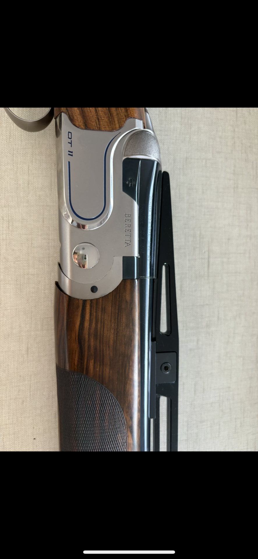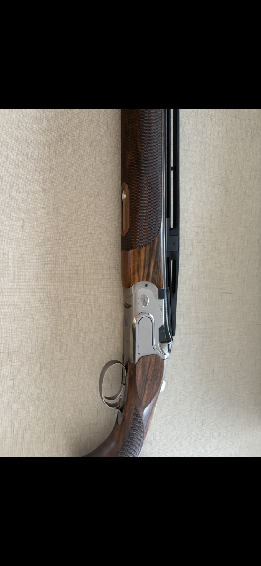 Espingarda Beretta OT 11 em madeira castanha e aço inoxidável prateado