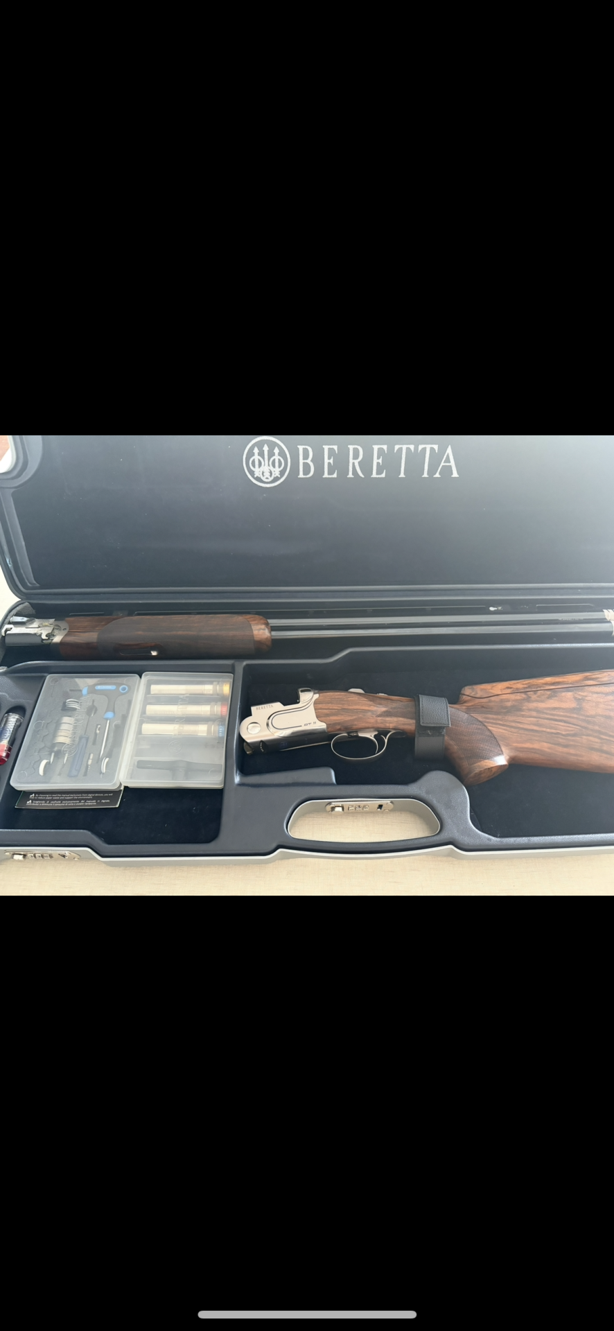 Estojo Beretta com espingarda desmontada e kit de manutenção