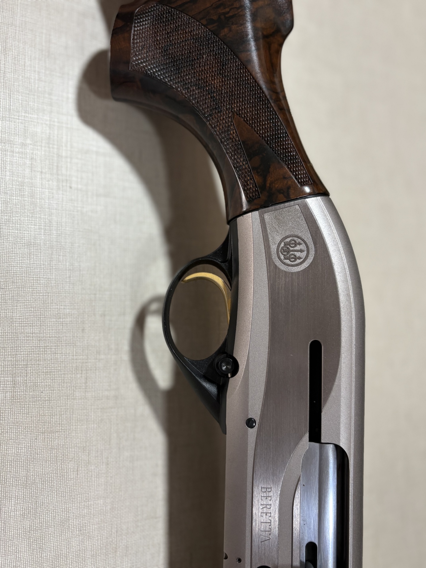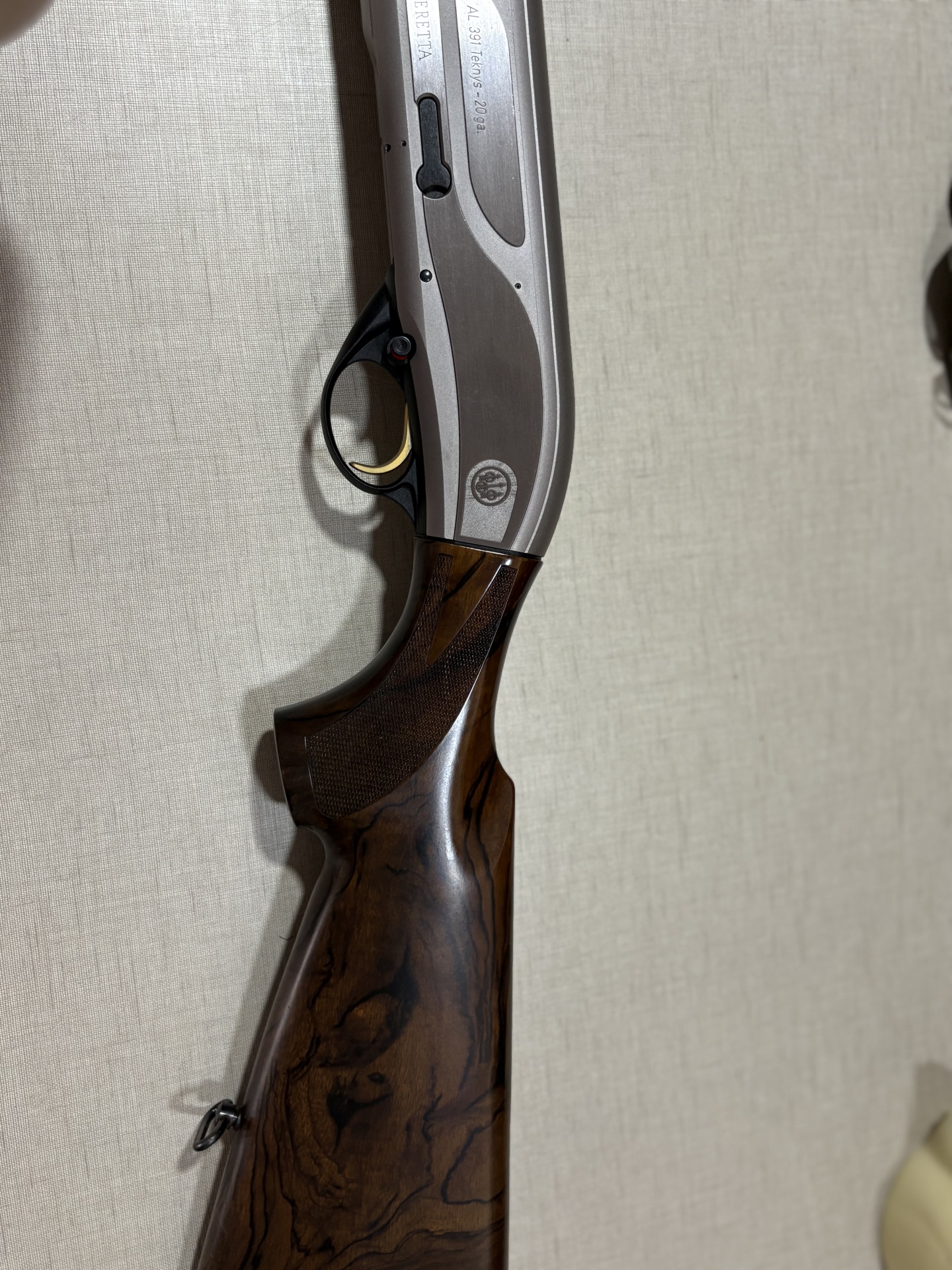 Espingarda de caça Beretta AL 391 com cabo de madeira e corpo de metal cinza