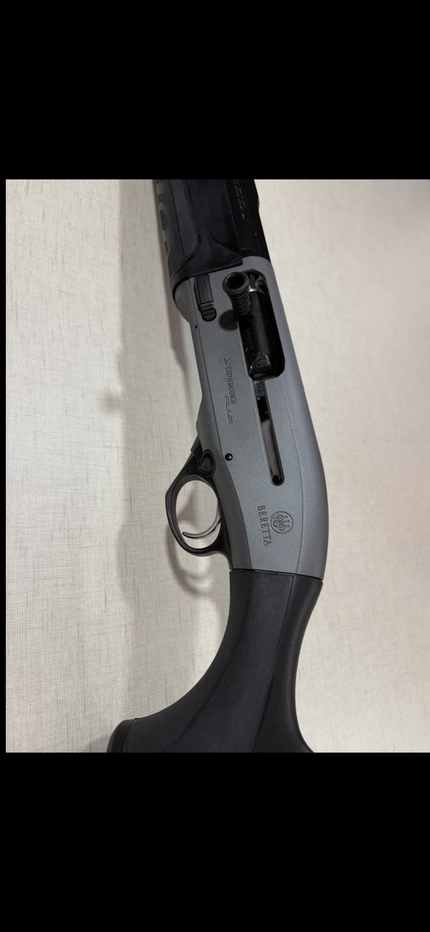 Espingarda preta Beretta Xtrema PLUS com fundo claro