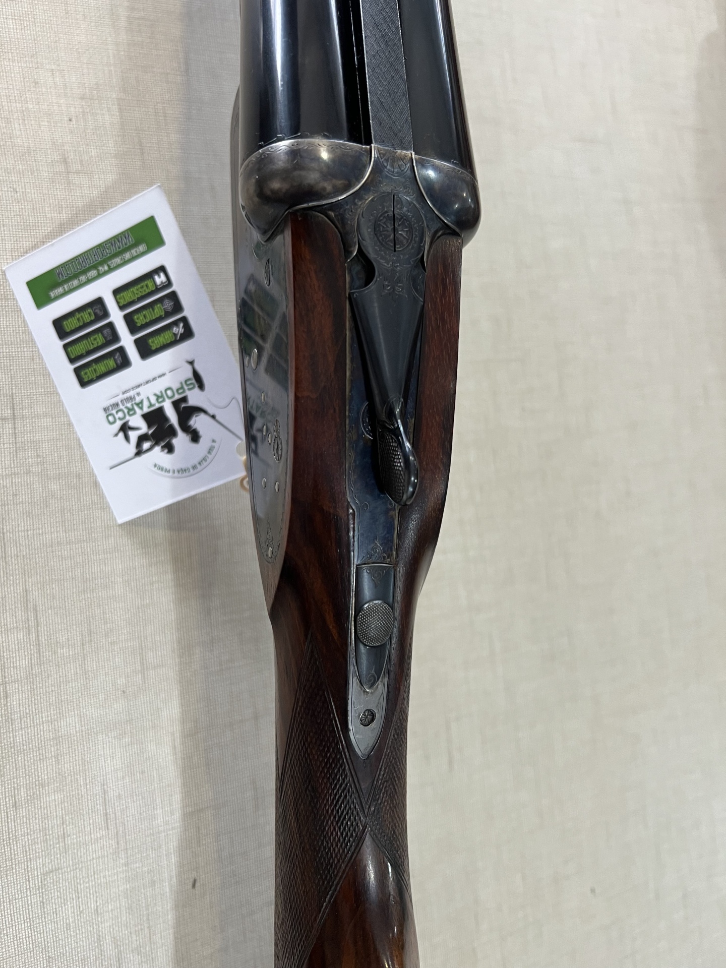 Arma de fogo com canos duplos e empunhadura de madeira texturizada