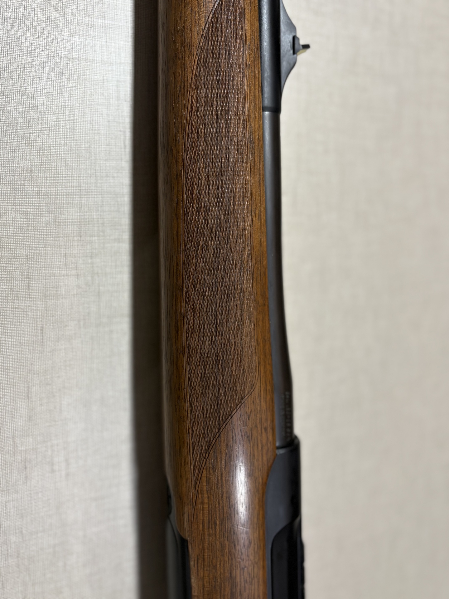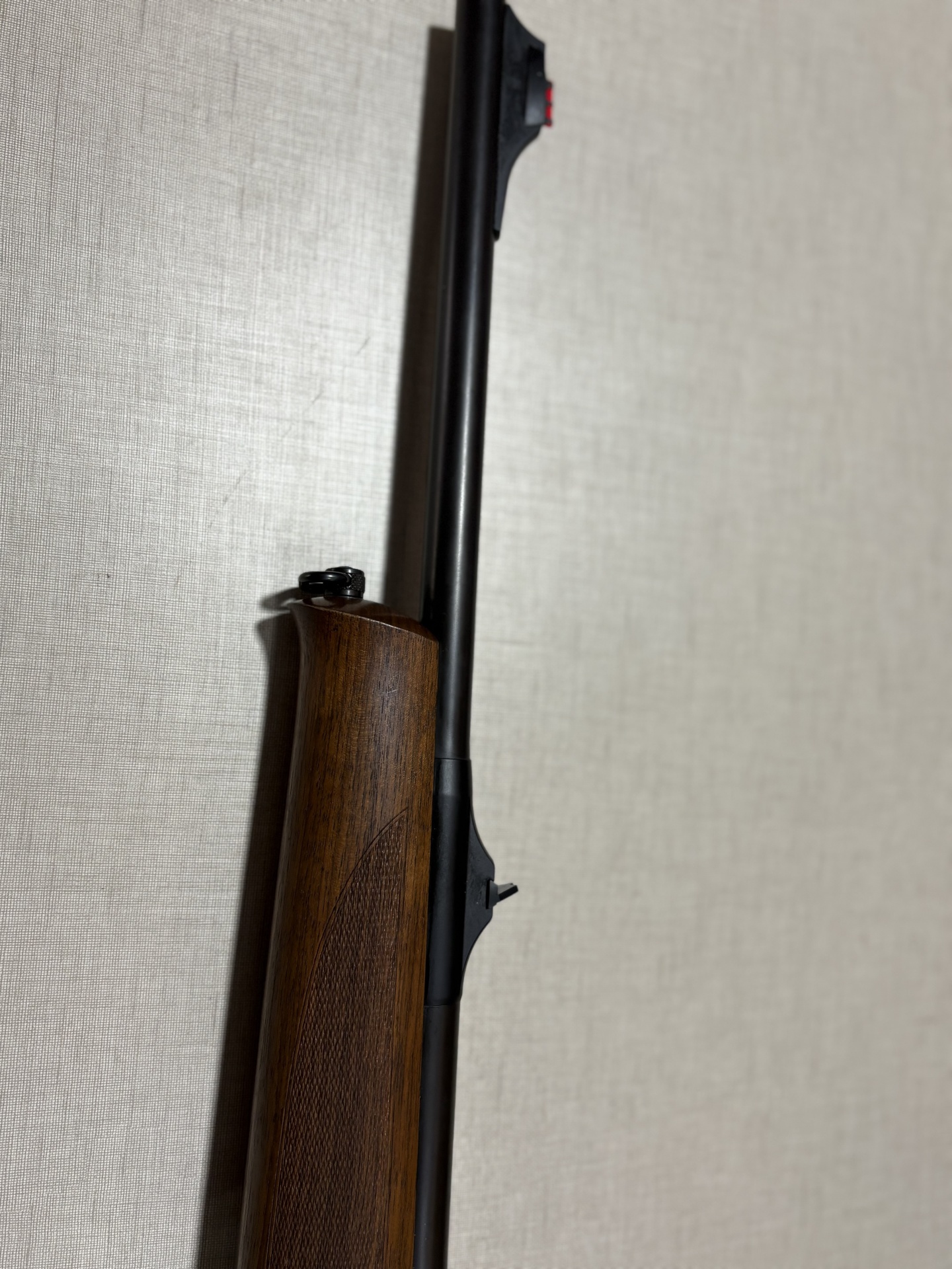 Espingarda com acabamento em madeira e metal preto com gravação SAUER 303
