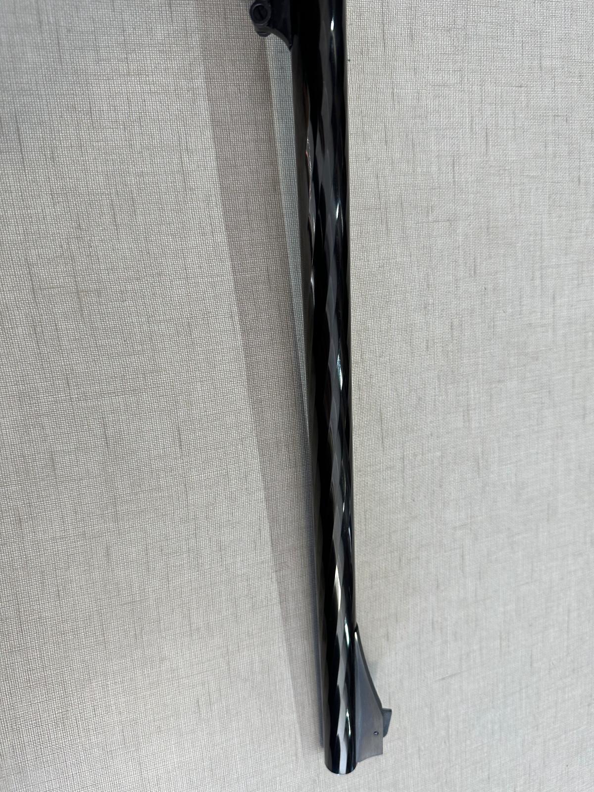 Rifle de madeira com luneta preta e etiqueta pendurada