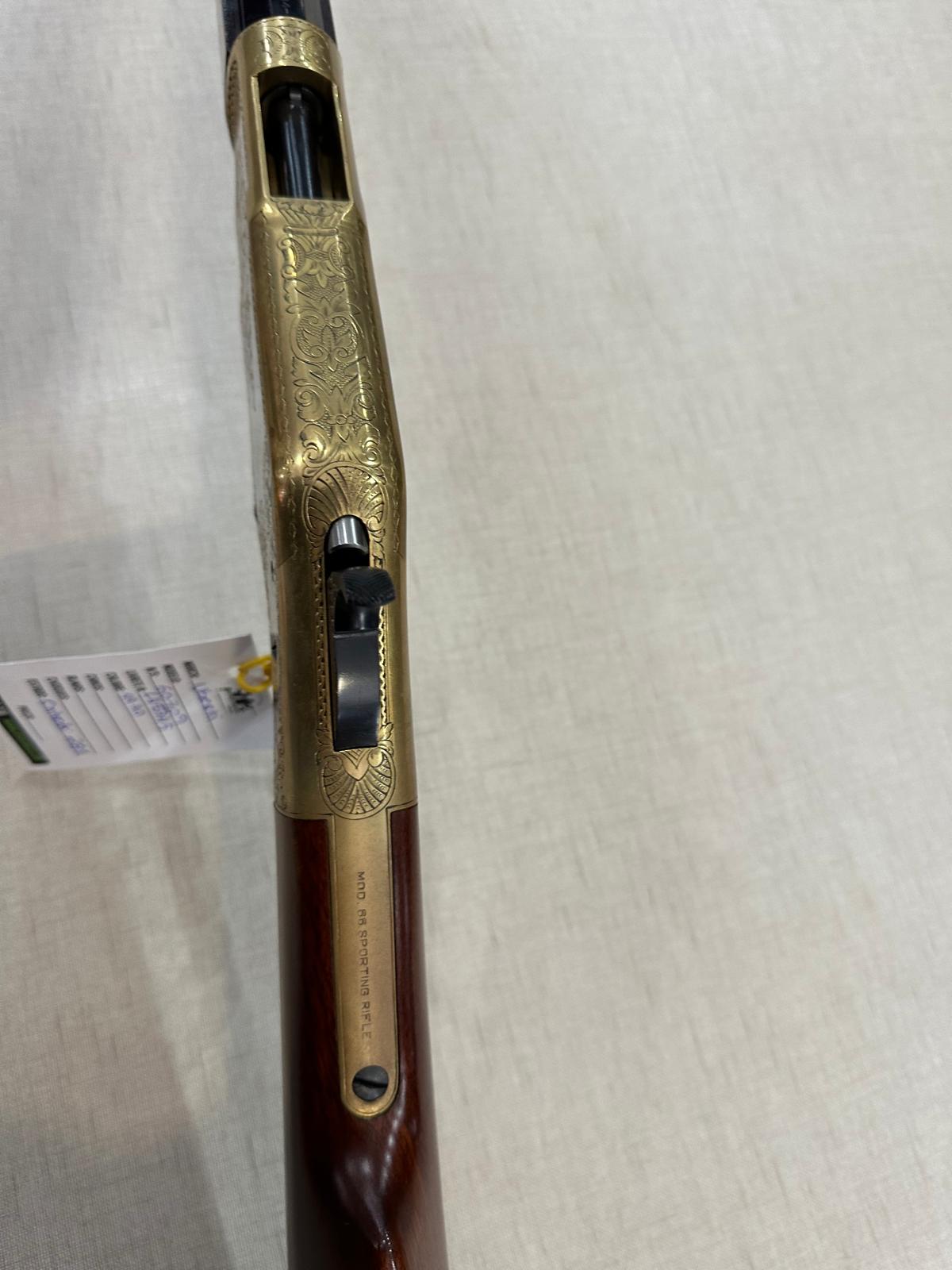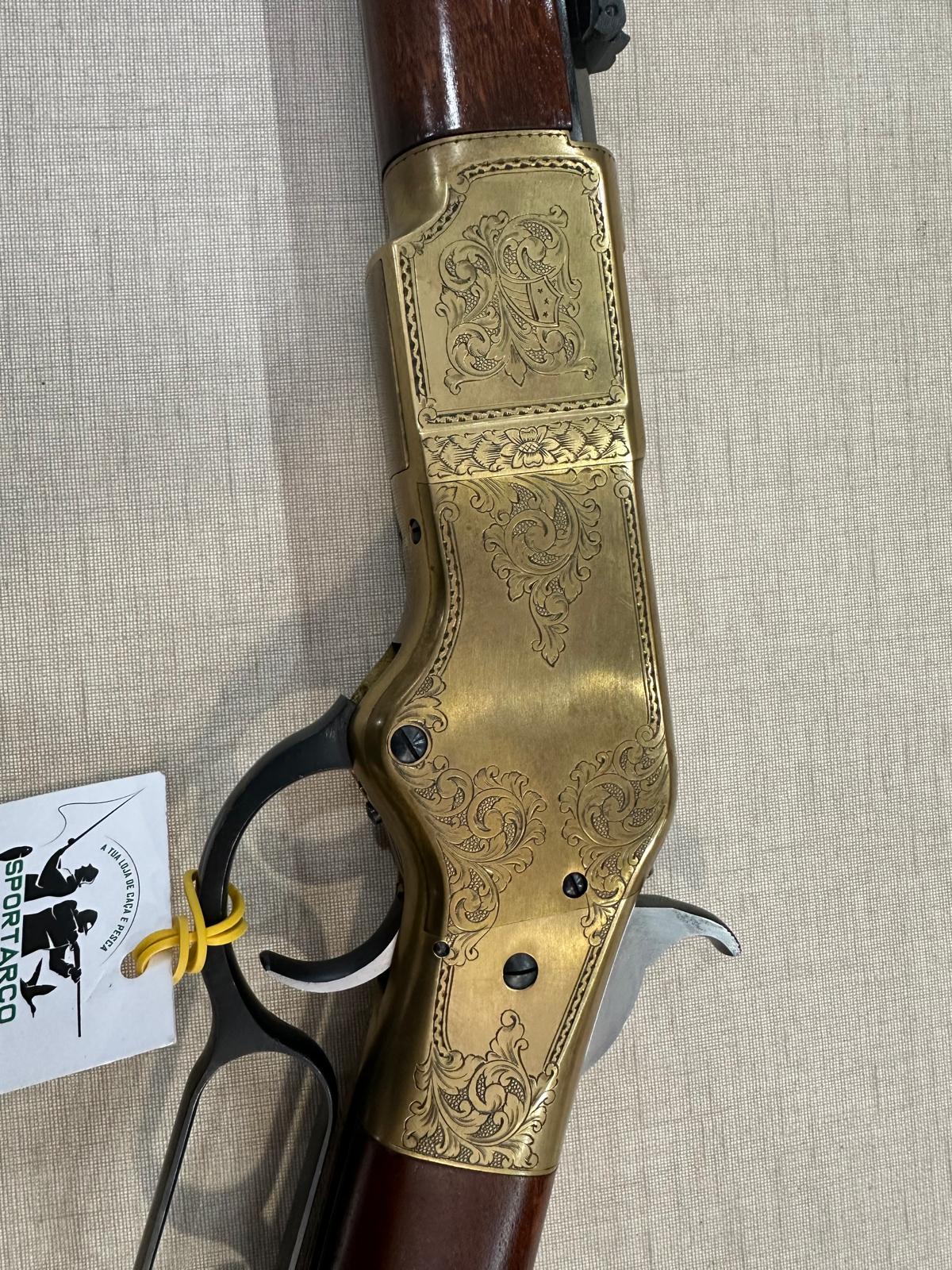 espingarda de caça com caixa dourada gravada e etiqueta SPORTARCO
